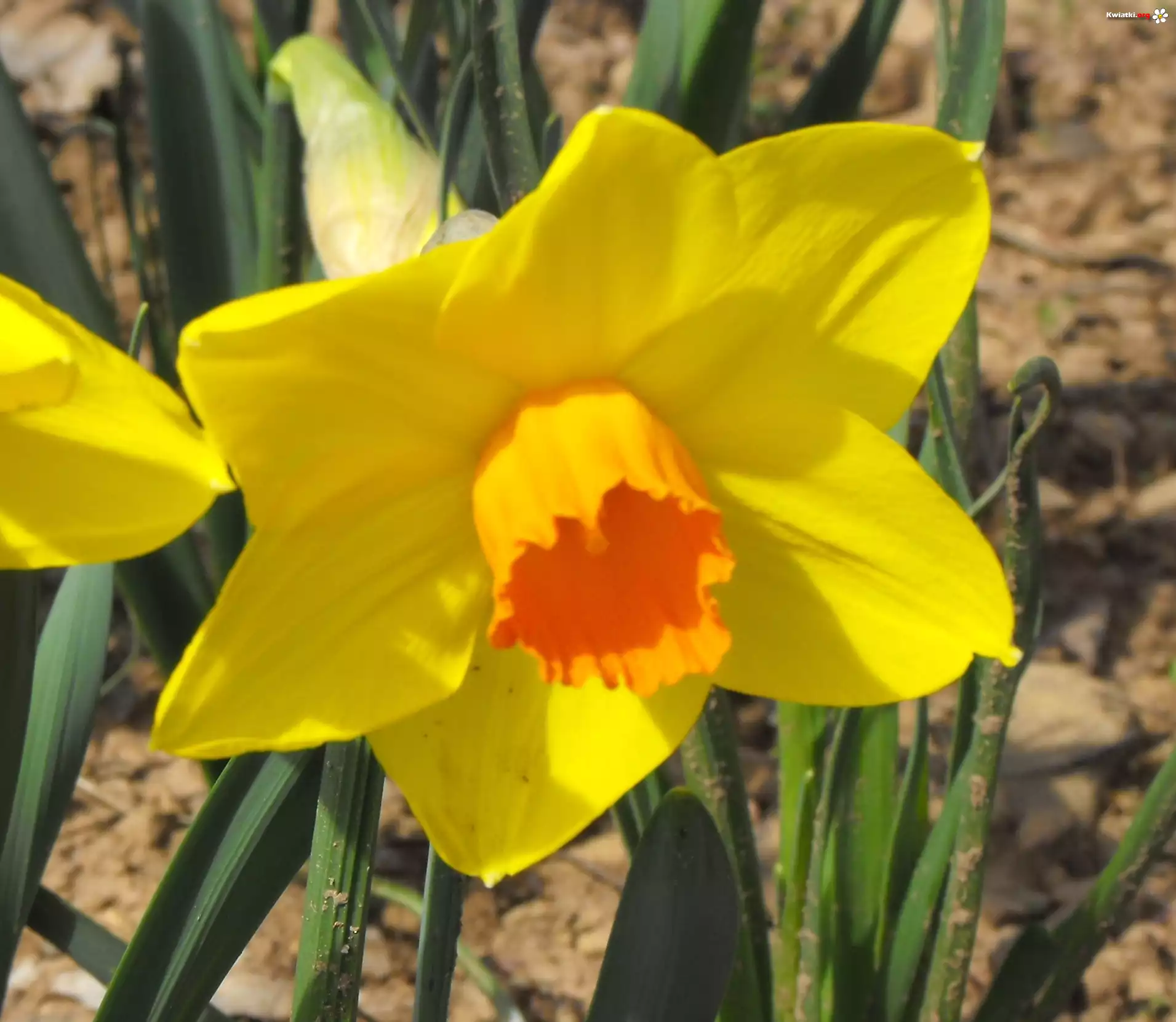 Kwiaty, Narcyzy, Tulipany, Bratki Białe, Narcyze, Niebieskie, Szafirki Trawa, Narcyzy Płatki, Żonkila Wazon, Żółte, Żonkile, Perły, Koronka Żonkile Żonkile, Ogród Kwiat, Narcyz Żółte, Żonkile Wiosenny, Narcyz, Dziewczyna, Długie, Włosy Żonkil, Czarne, Tło Narcyz, Łodyga Czerwony, Przykoronek Dzbanki, Lampka, Filiżanka, Narcyze, Tkanina