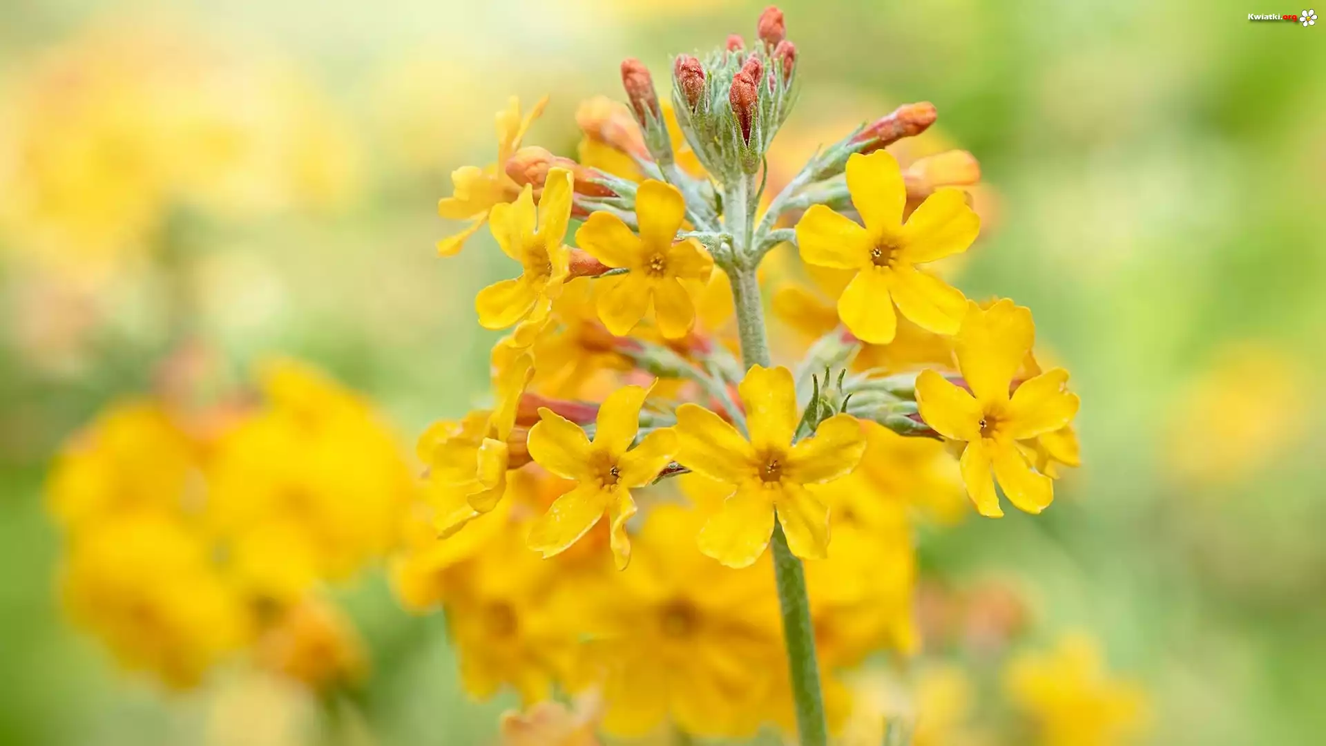 Kwiat, Żółty, Pierwiosnek, Prymula, Primula beesiana, Rozmyte tło - Zdjęcia