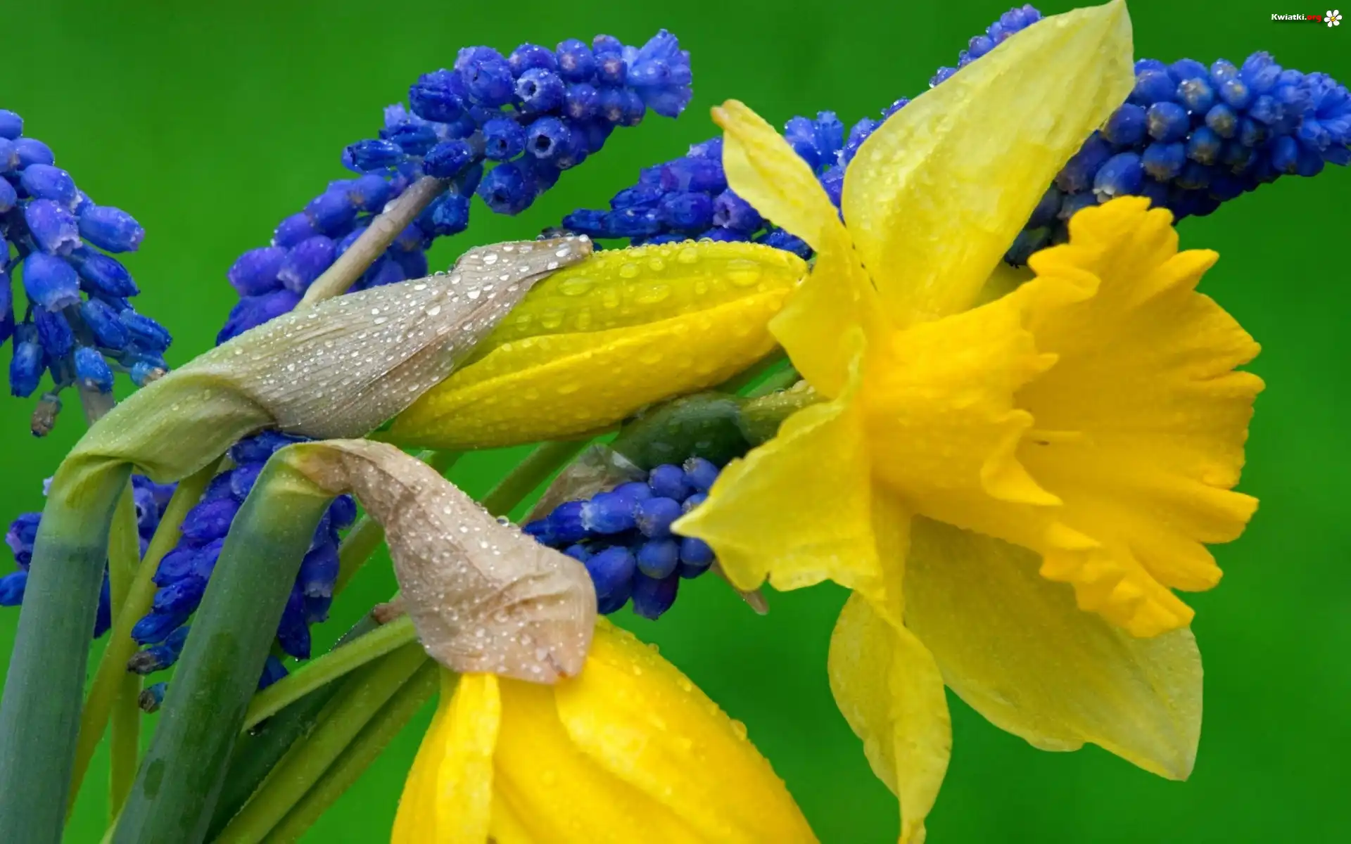 Żółte, Kwiaty, Żonkile Trzy, Zajączki, Żonkile Żonkile, Żółta, Biedronka Pole, Kwiatów,  Narcyzy Żonkil, Zdjęcie Kwiat, Żonkila Żonkil, Kwiat, Łodyga Żonkile, Wiosenne, Kwiaty Narcyzy, Niebieskie, Hiacynty Biały, Narcyz Narcyz, Kolorowe, Płatki Żółte, Żonkile, Pnie, Drzew Mieszaniec tazetta Żółty, Kwiatek, Czarne, Tło, Żonkil