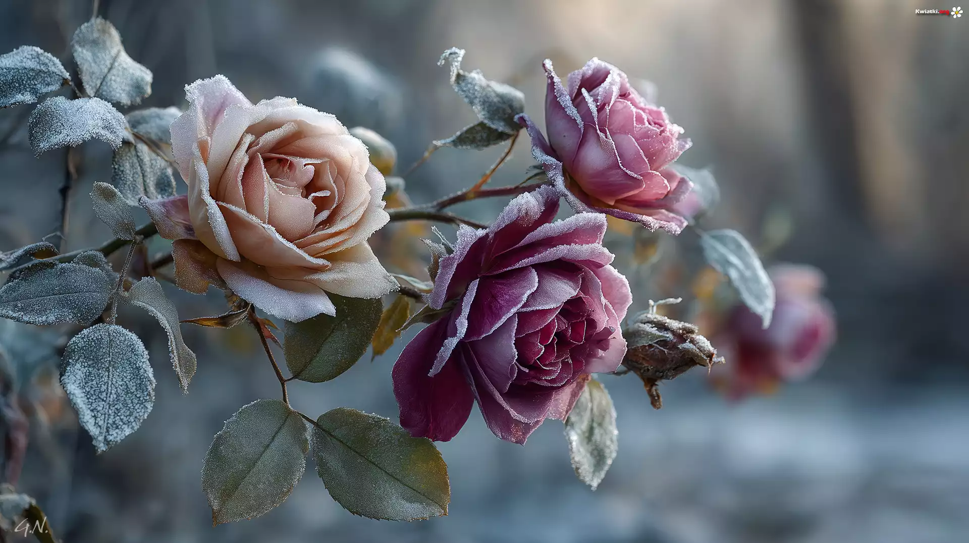 Róże, Oszronione, Kwiaty, Grafika AI - Zdjęcia