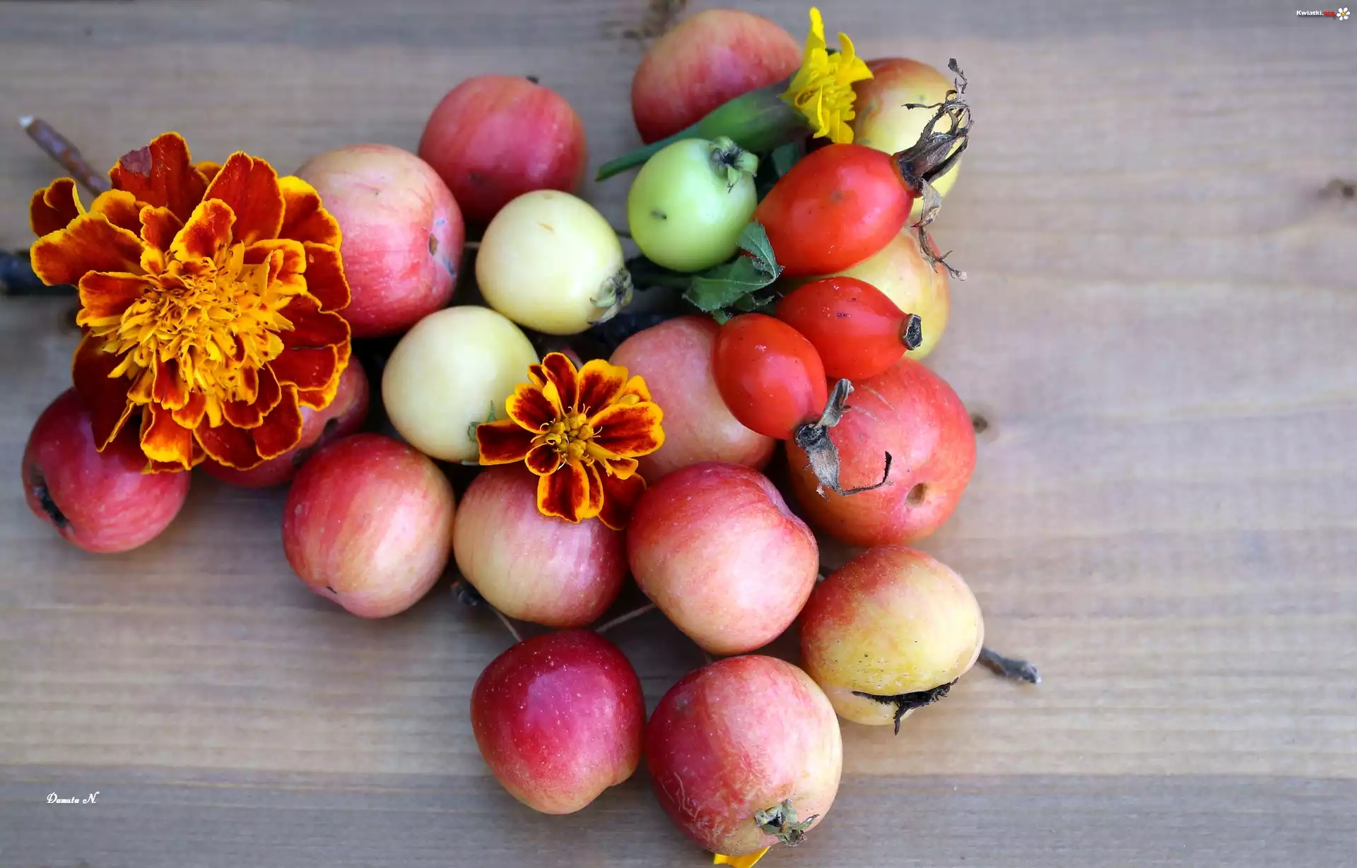 Owoce, Dzikiej Róży, Jabłka, Aksamitka - Zdjęcia