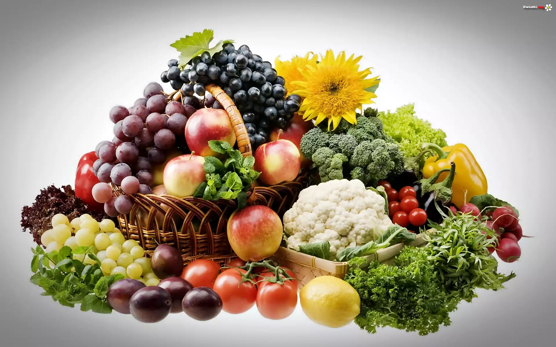 Kwiat Owoce, Warzywa, Kwiaty, Jabłka, Winogrona, Śliwki