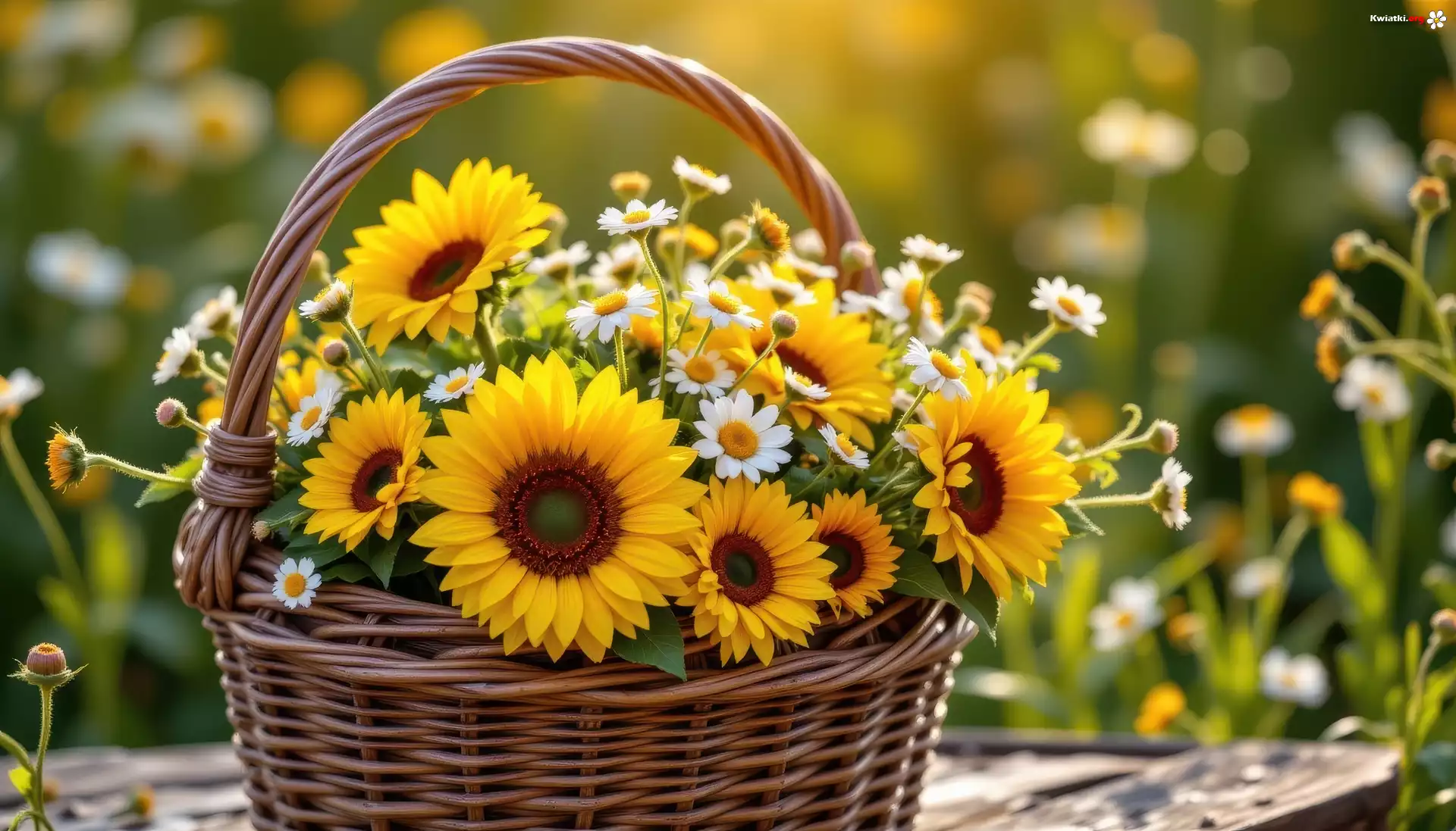 Kwiat Słoneczniki ozdobne, Stokrotki, Wiklinowy, Koszyk