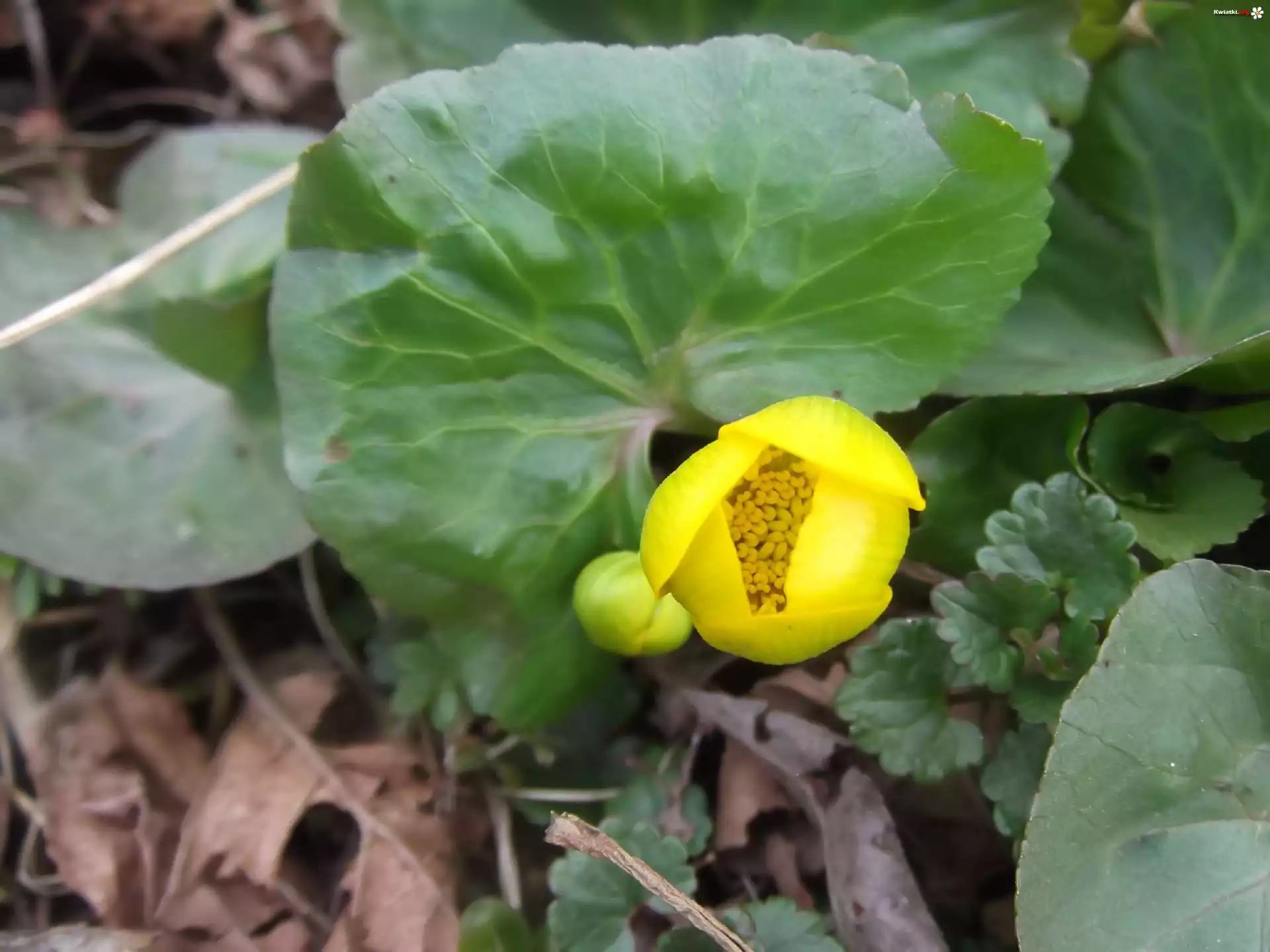 Kwiat Pąk, Kwiatowy, Kaczeńca, Błotnego, Liście