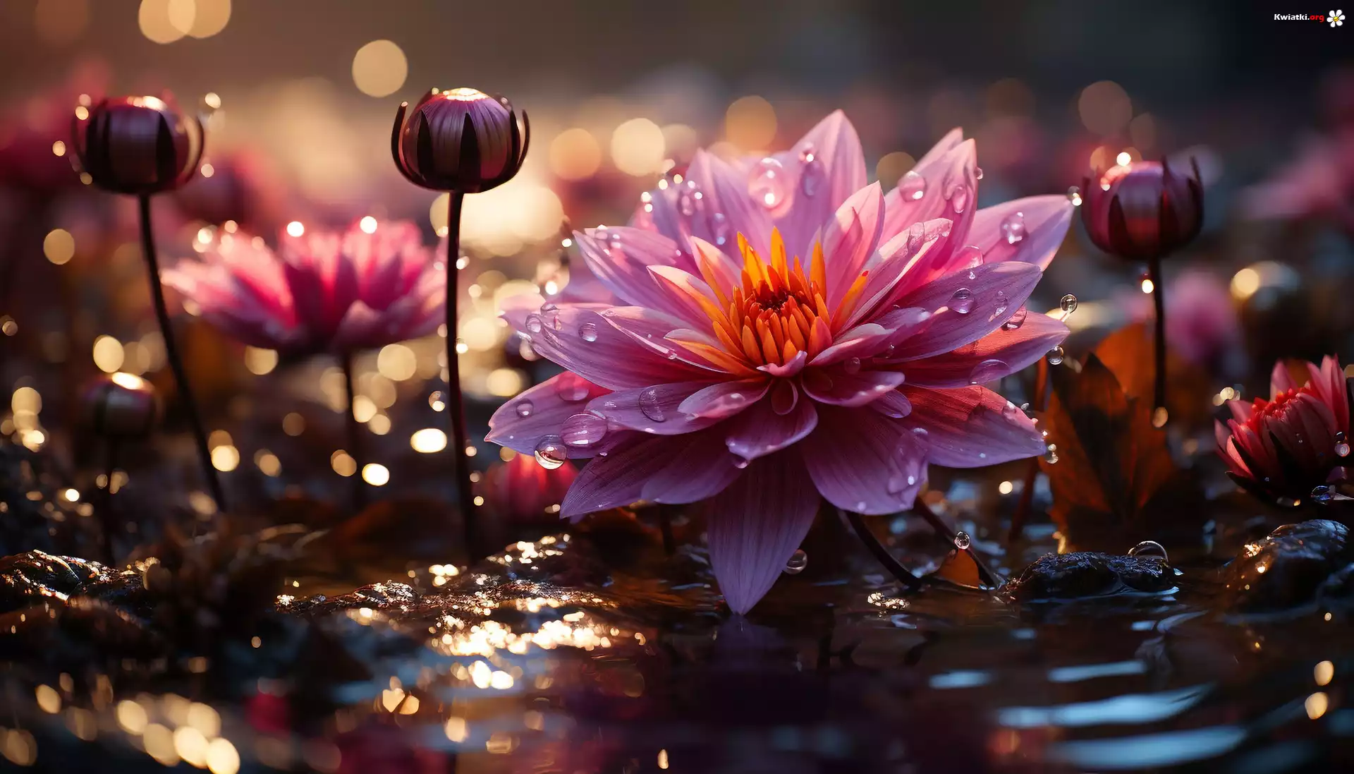 Lilia wodna, Kwiat, Pąki, Światło, Grafika - Zdjęcia