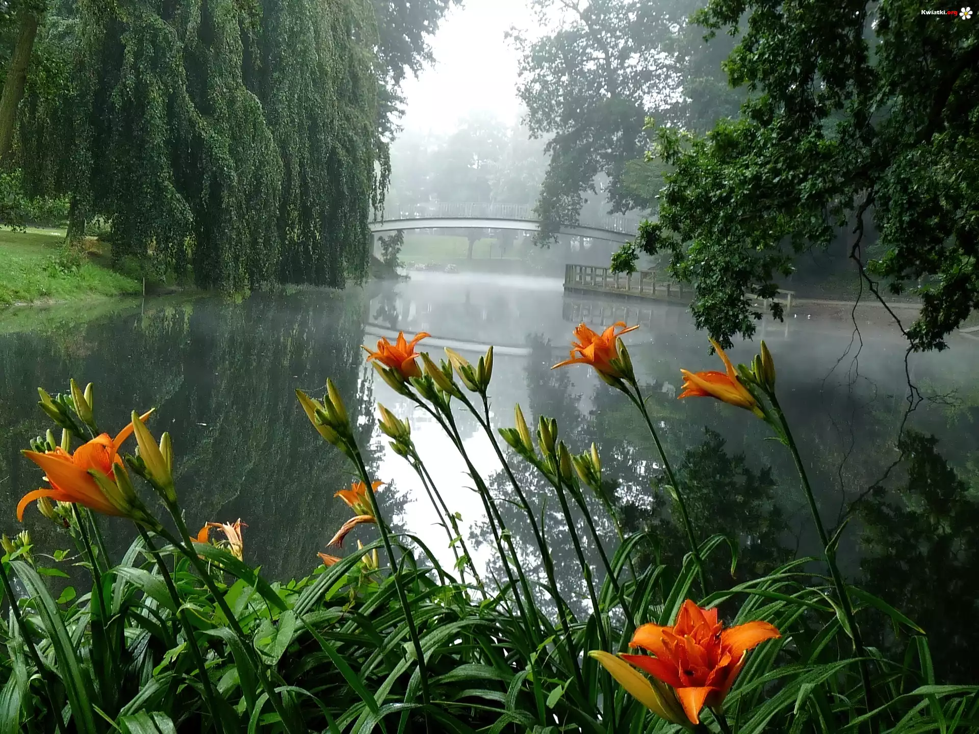 Kwiat Park, Jeziorko, Kwiaty, Drzewa
