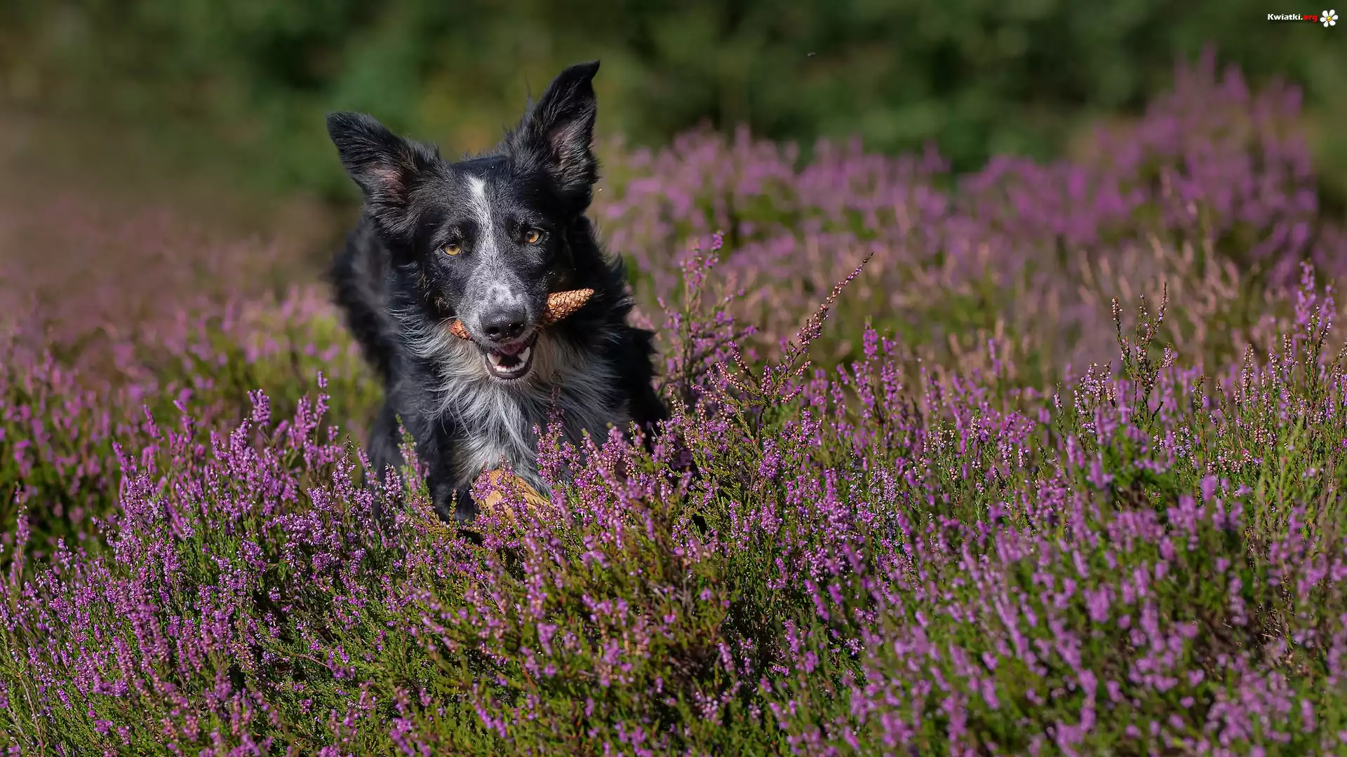 Kwiat Pies, Border collie, Szyszka, Wrzosy