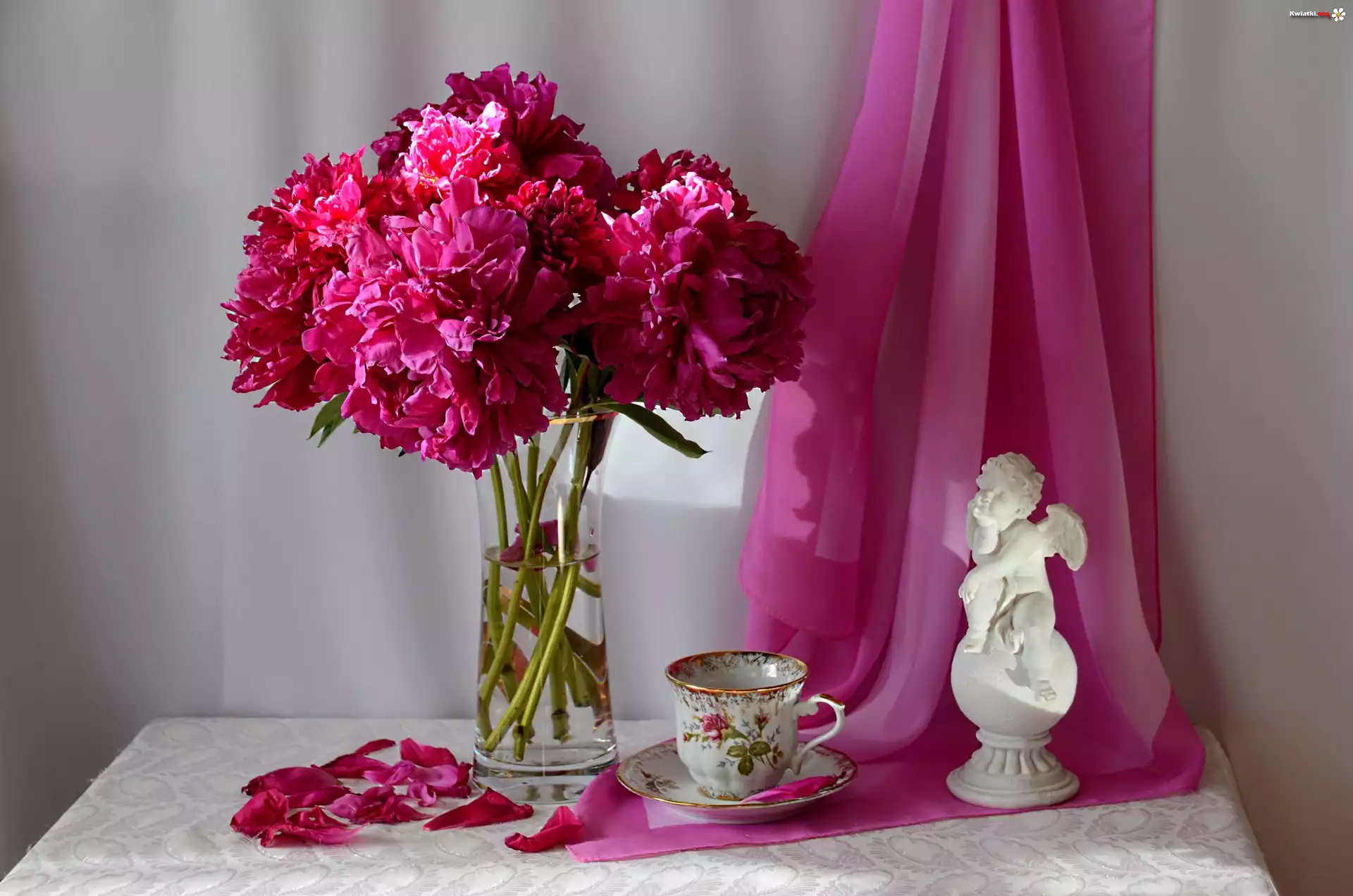 Piwonie, Figurka, Amorek, Kompozycja - Zdjęcia