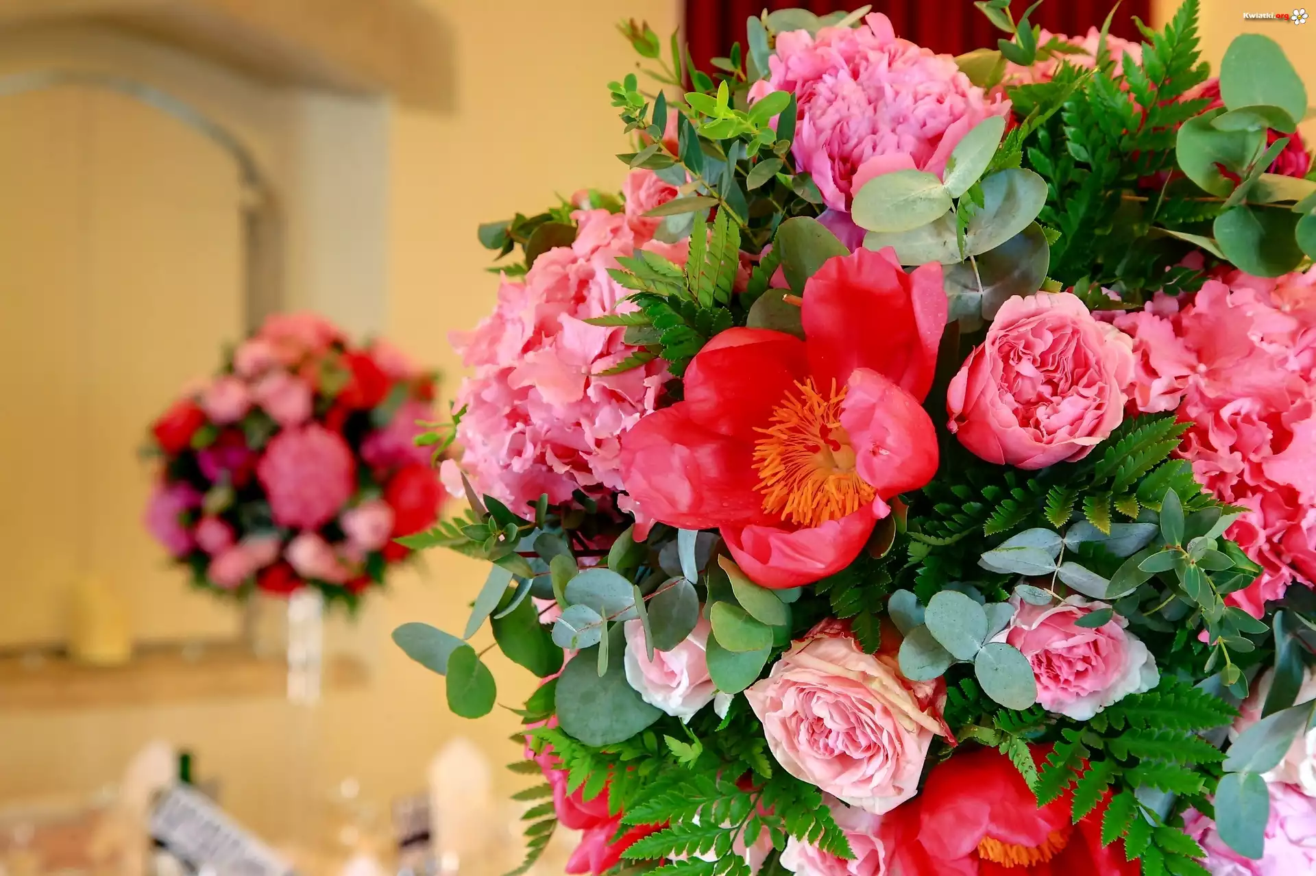 Kwiat Piwonie, Róże, Bukiet kwiatów