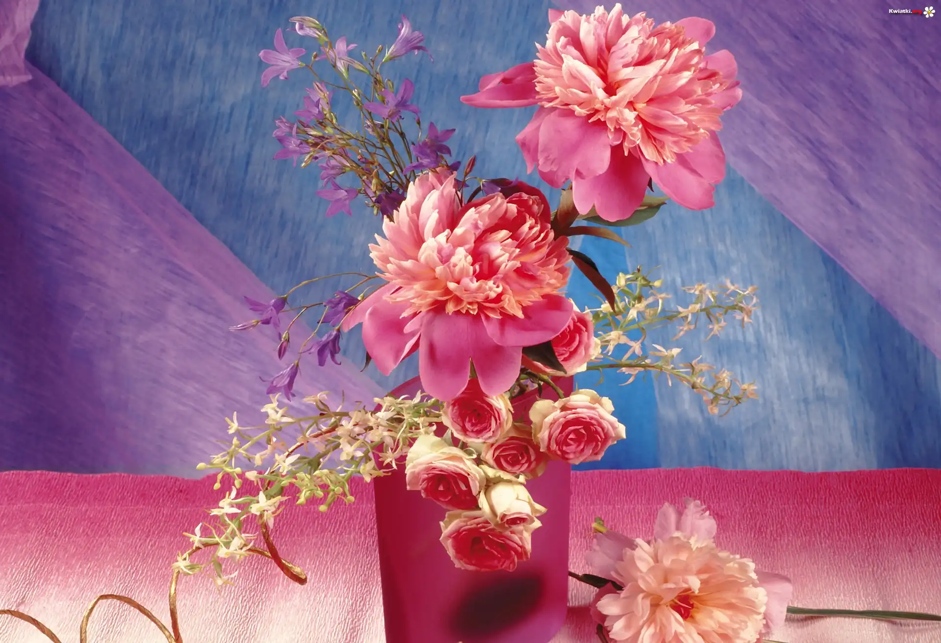 Piwonie, Róże, Wazon, Bukiet, Kwioatów - Zdjęcia