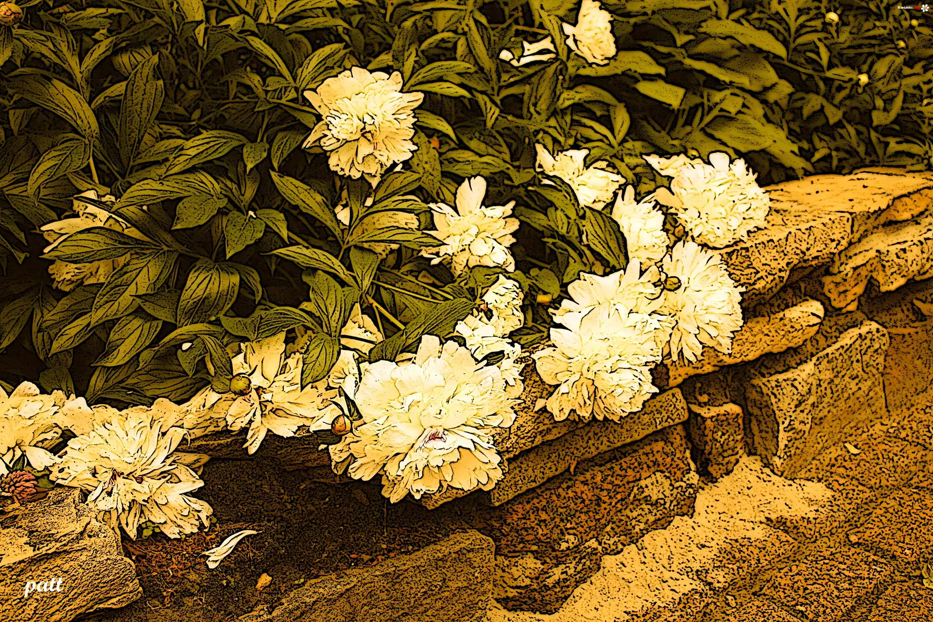 Kwiaty, Piwonie, Rysunek - Zdjęcia