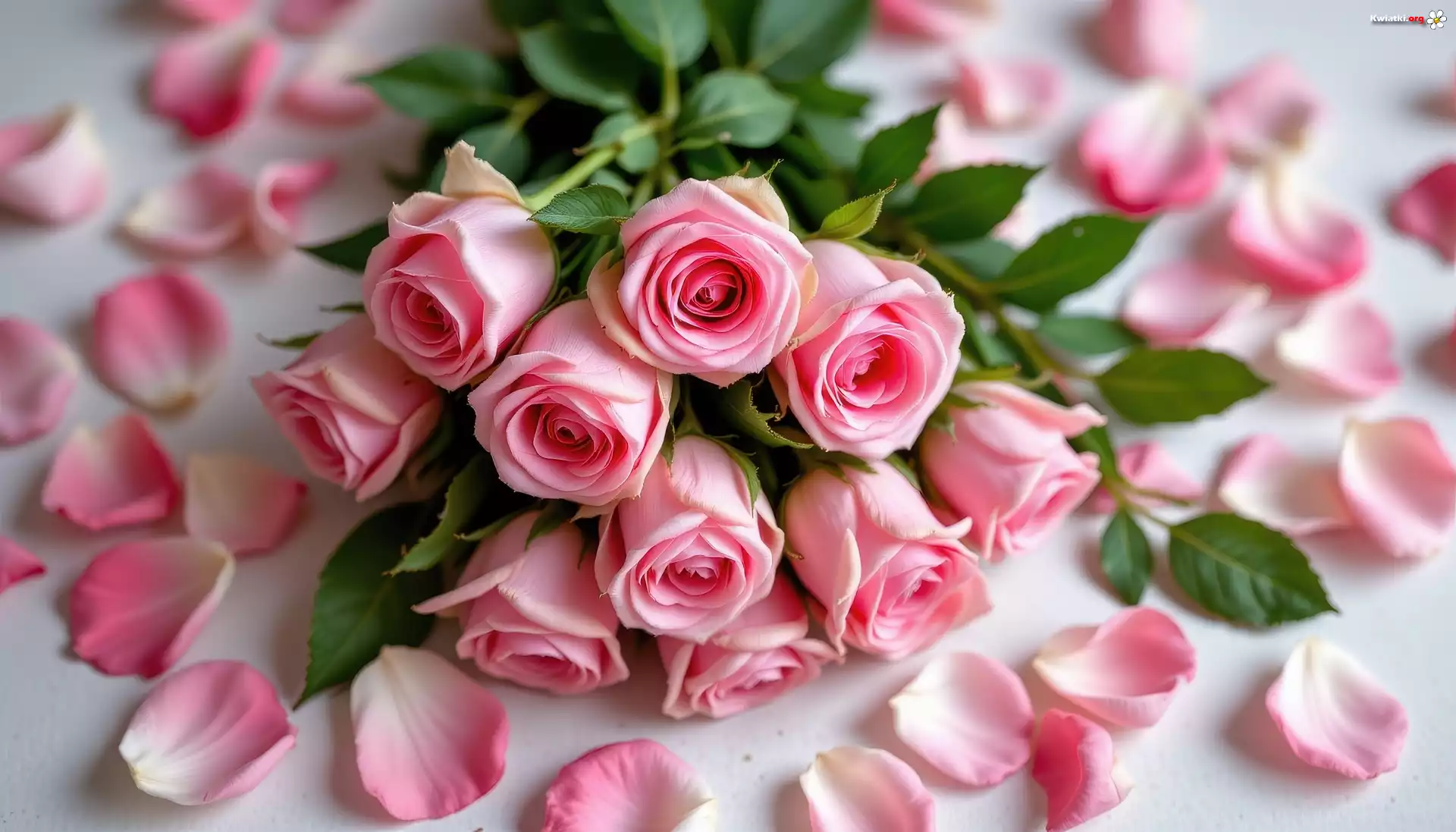 Wiązanka, Różowe, Róże, Płatki - Zdjęcia