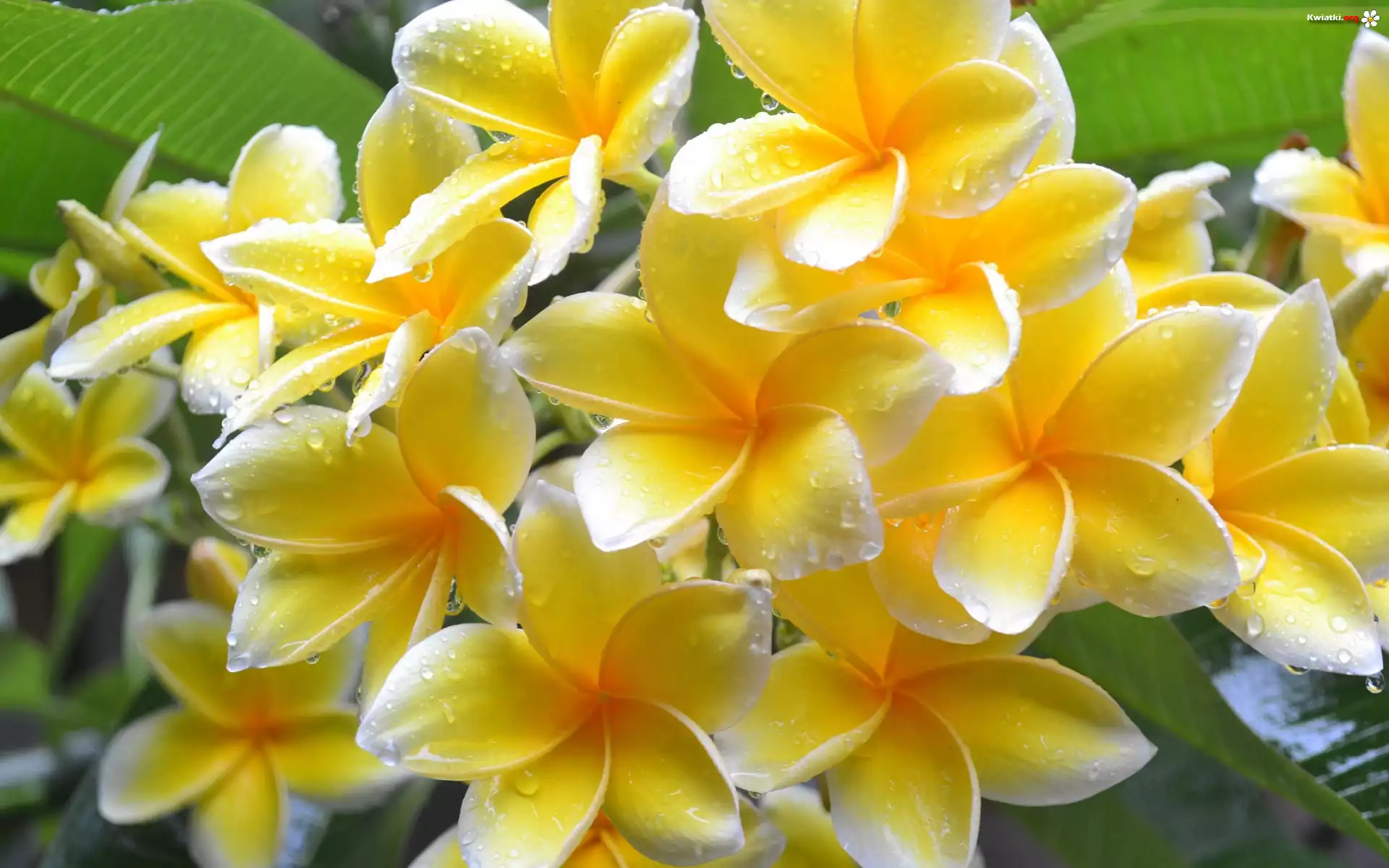 Plumeria, Żółte, Kwiaty, Krople - Zdjęcia