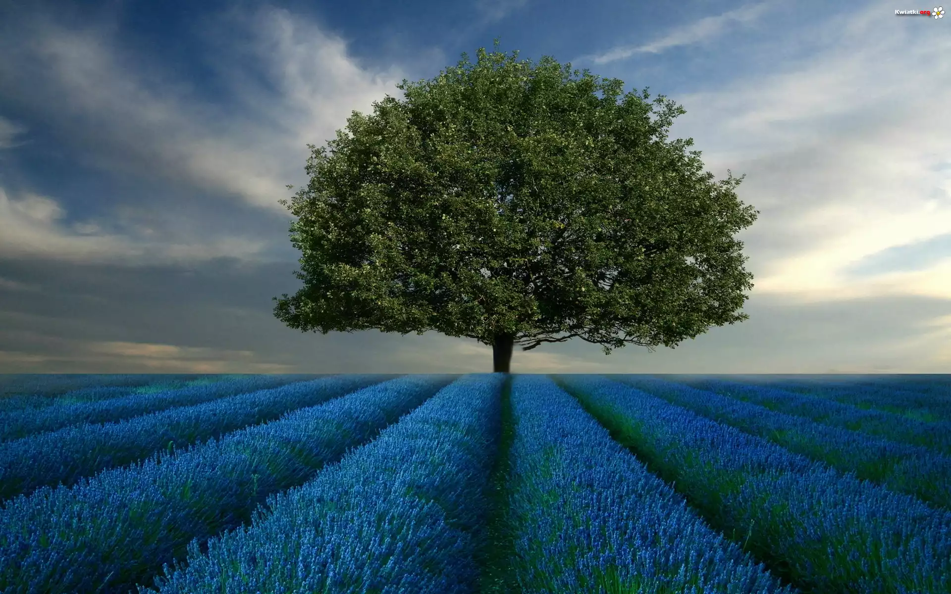 Lawendowe, Pole, Drzewo - Zdjęcia