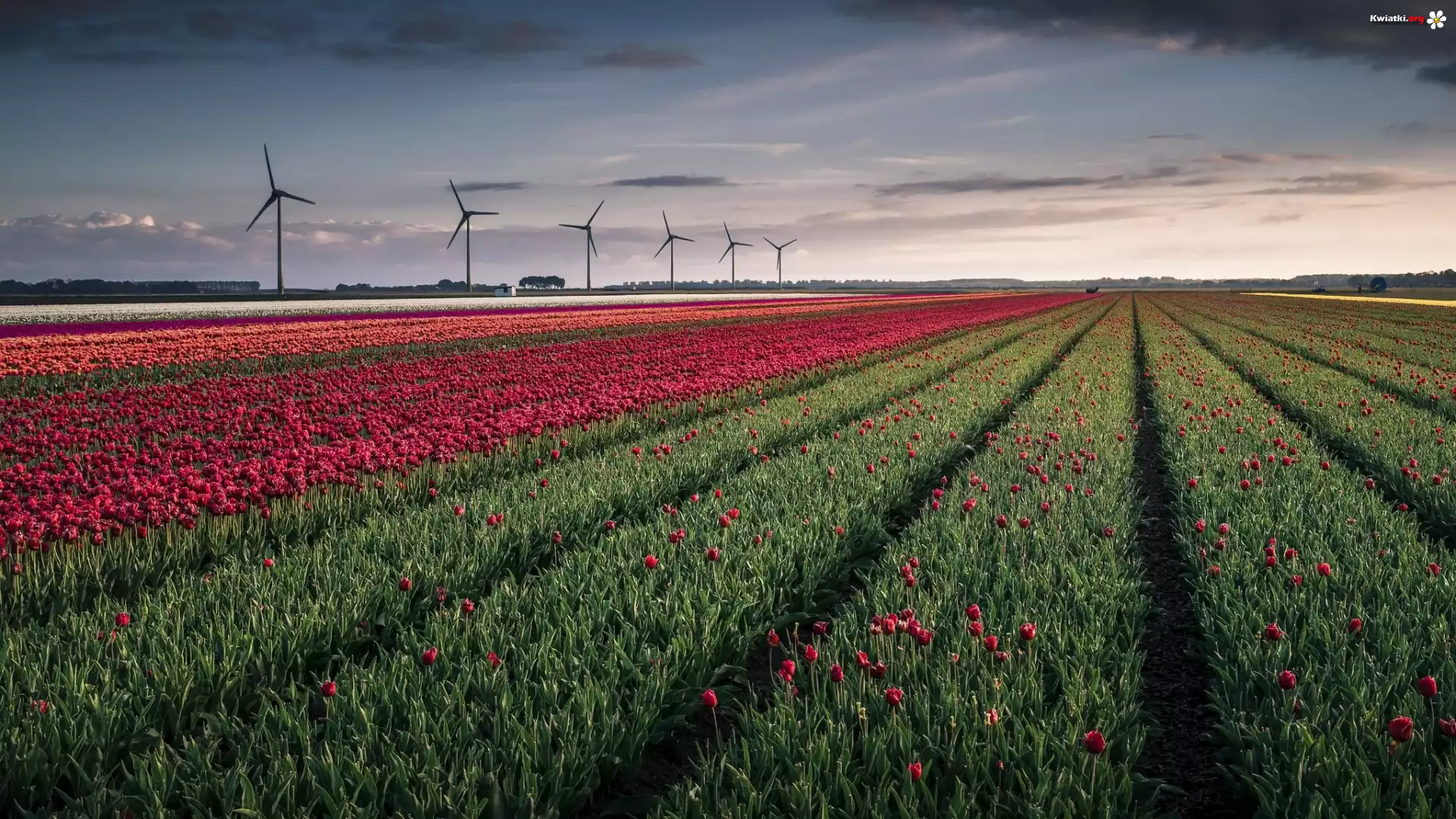 Kwiat Pole, Kwiaty, Tulipany, Wiatraki