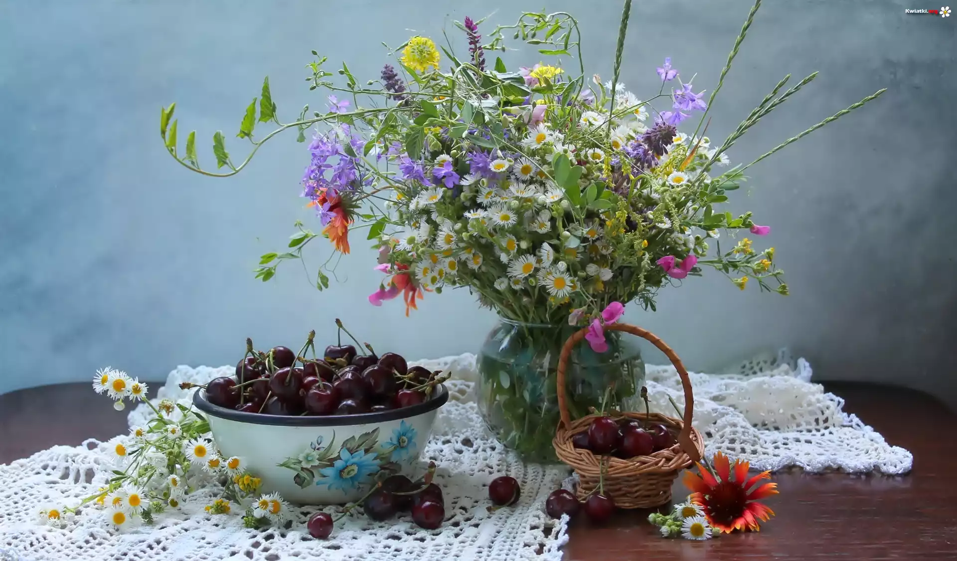 Polne, Kwiaty, Flakon, Wiśnie - Zdjęcia