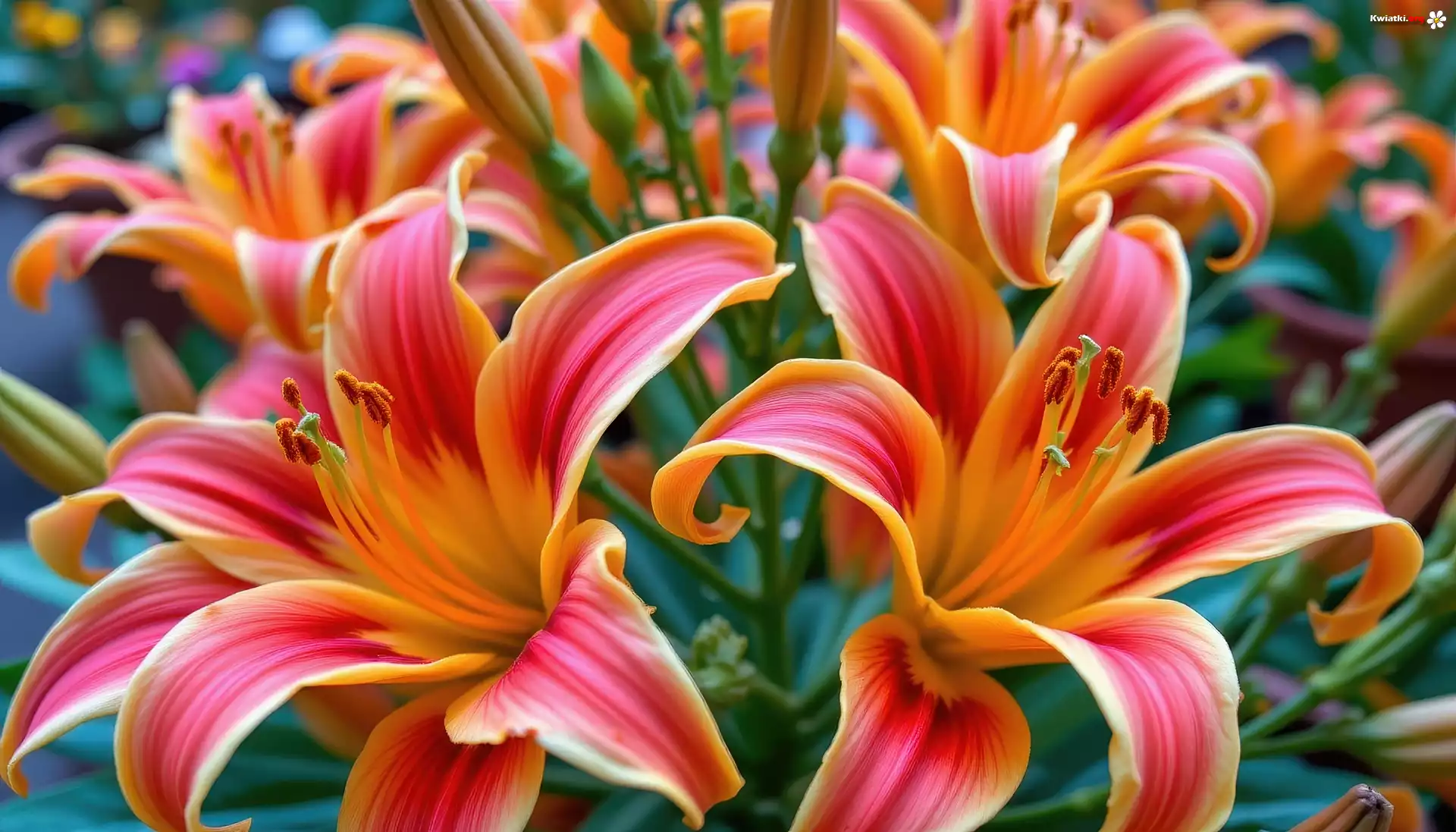 Lilie, Pomarańczowe, Kwiaty, Grafika AI - Zdjęcia
