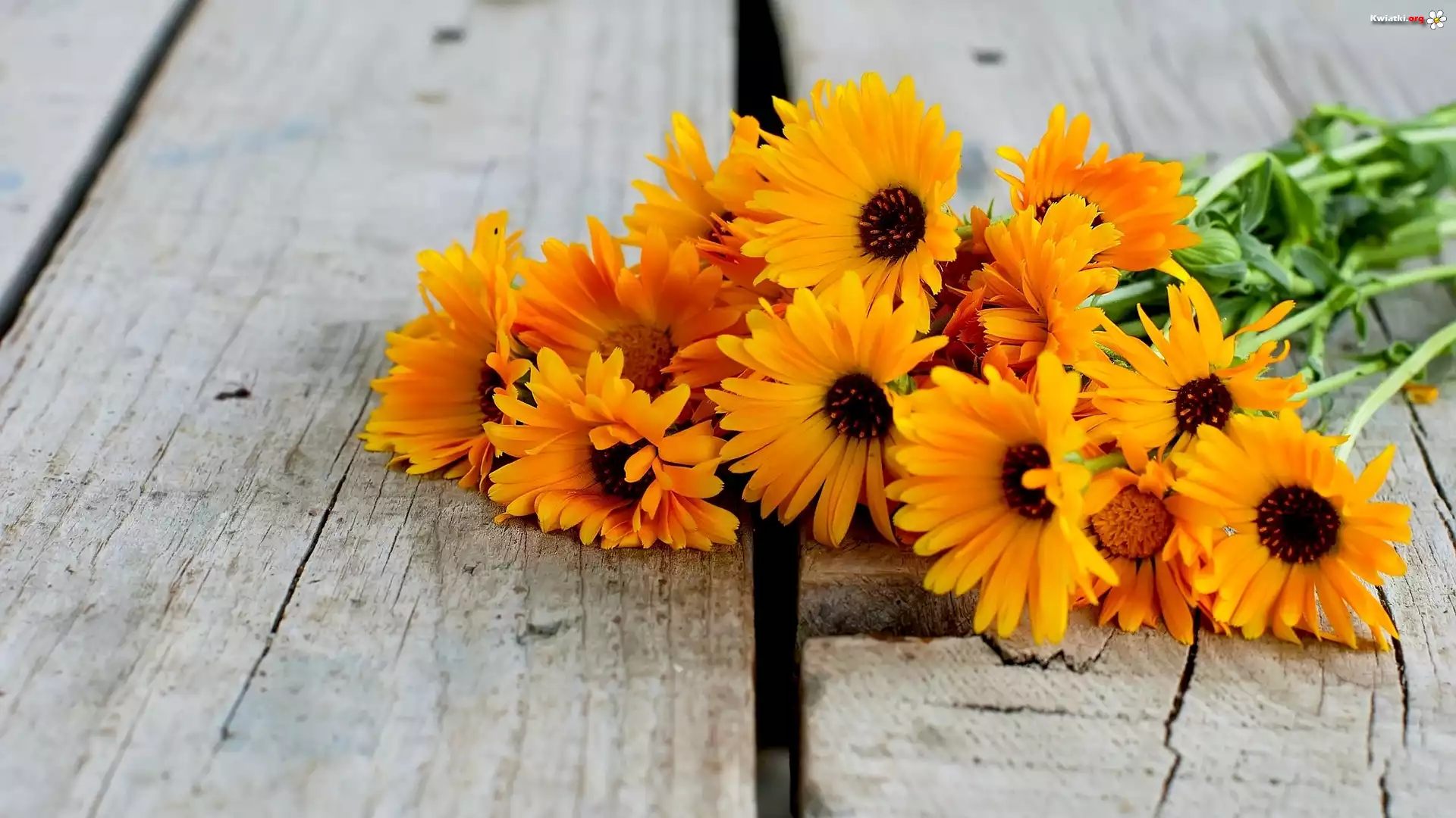 Pomarańczowe, Nagietki lekarskie, Deski - Zdjęcia