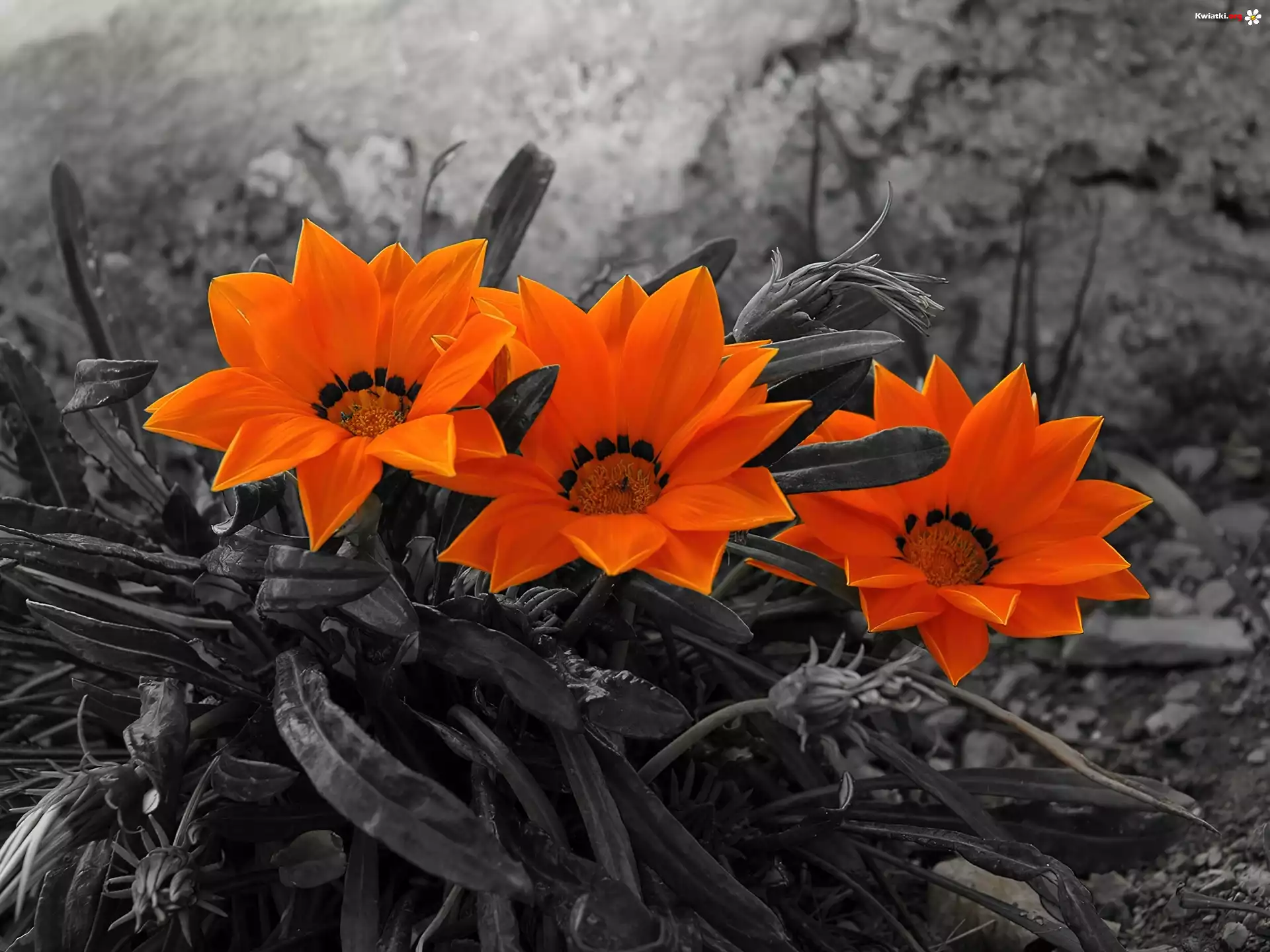 Kwiat Pomarańczowe, Kwiaty, Szare, Tło