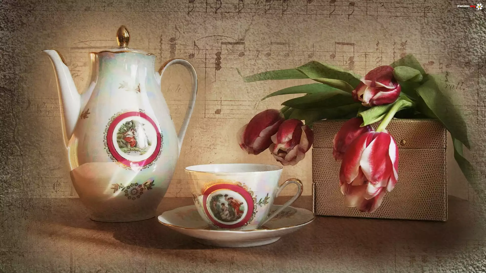 Porcelana, Tulipany, Pudełko, Nuty - Zdjęcia
