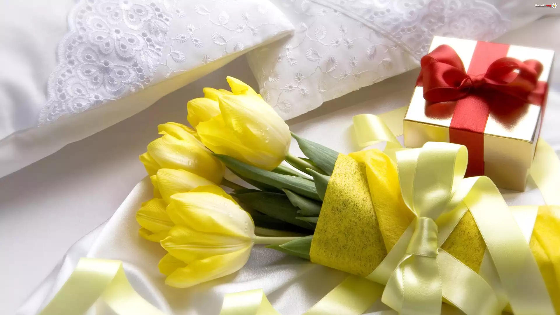 Żółte, Tulipany, Prezent, Pościel - Zdjęcia