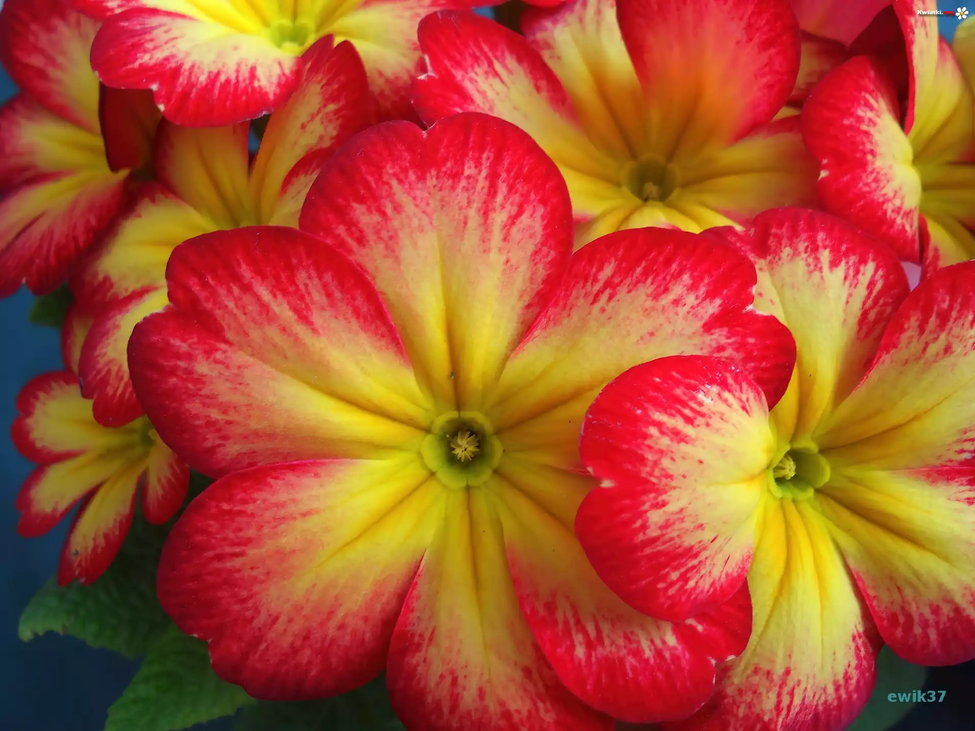 Prymula, Czerwono, Żółte, Kwiaty - Zdjęcia
