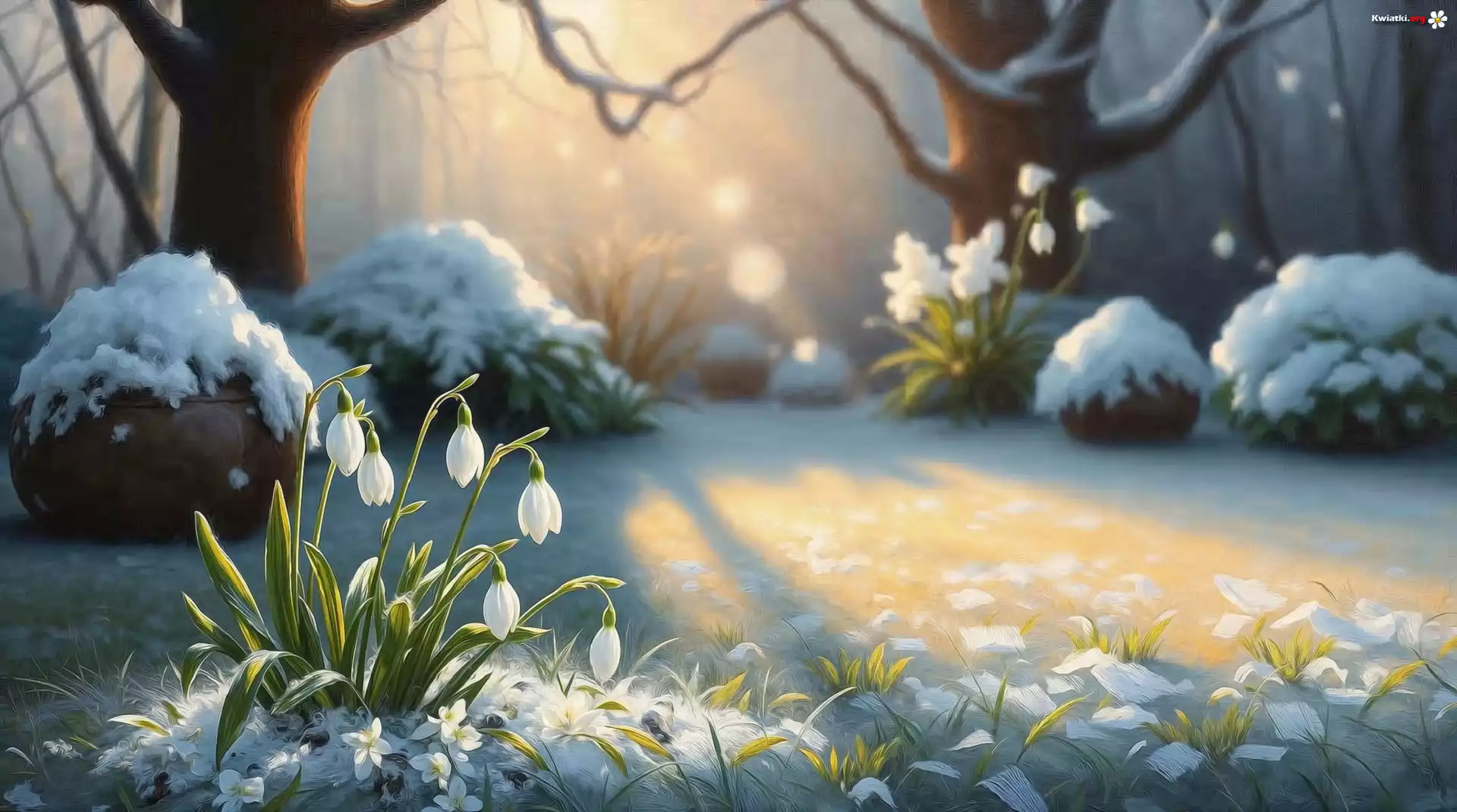 Kwiaty, Przebiśniegi, Drzewa, Słoneczny, Blask - Zdjęcia