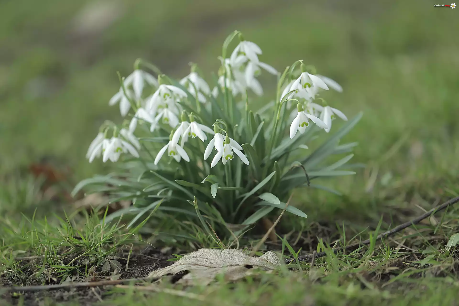 Kwiat Przebiśniegi, Białe, Kwiaty, Kępka, Trawa