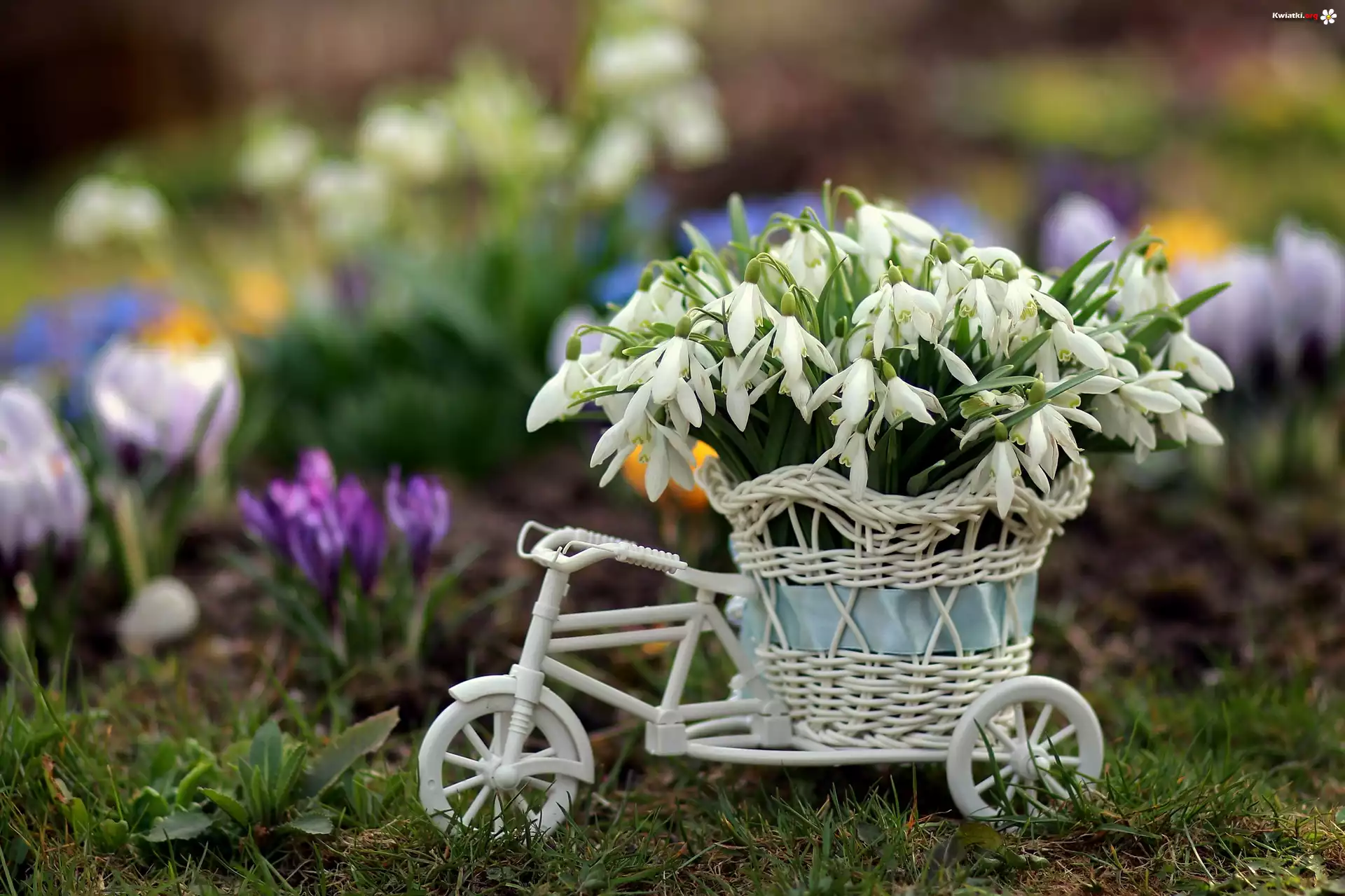 Przebiśniegi, Rowerek, Koszyczek, Dekoracja - Zdjęcia