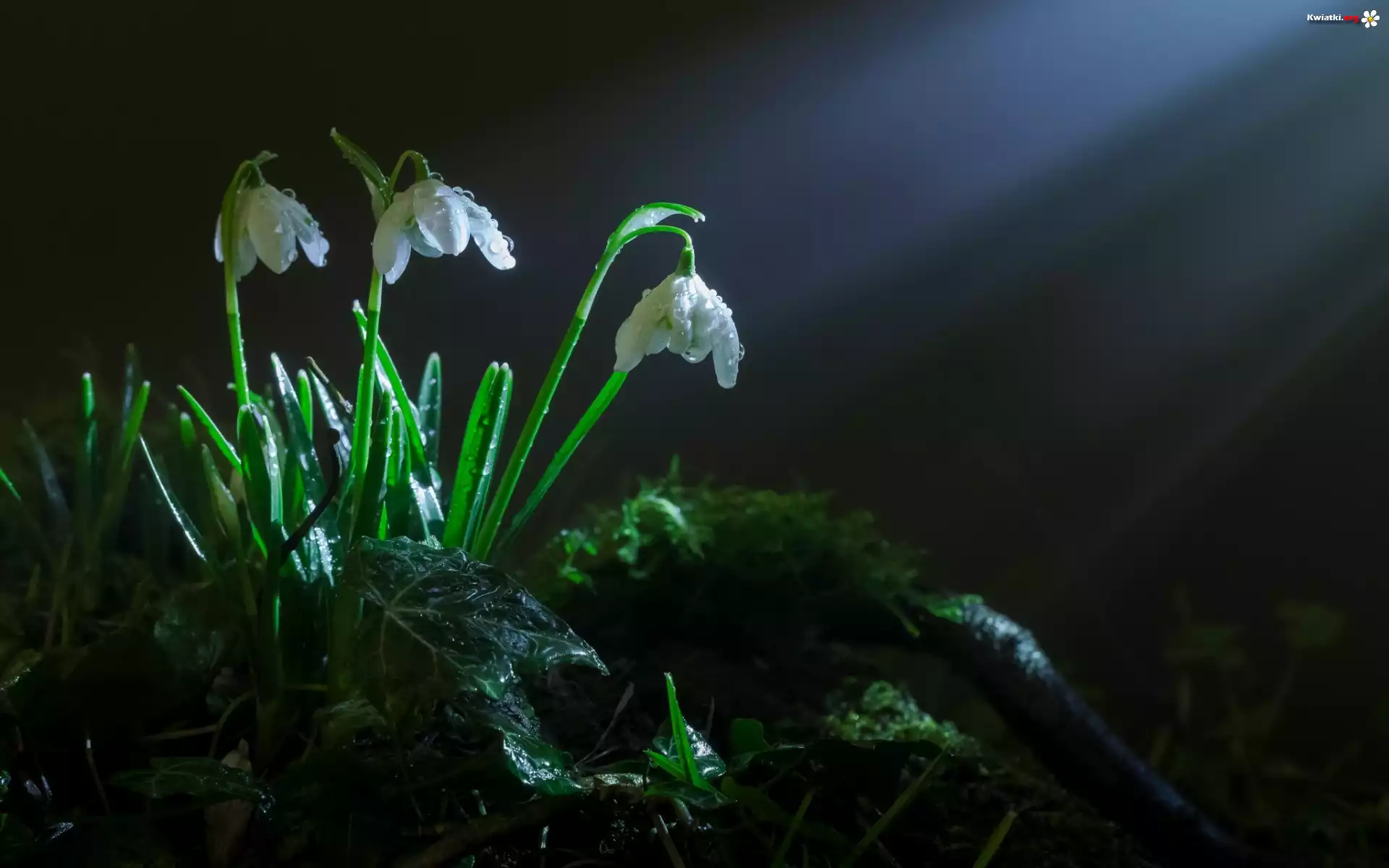 Kwiat Przebiśniegi, Rosa, Przebijające, Światło