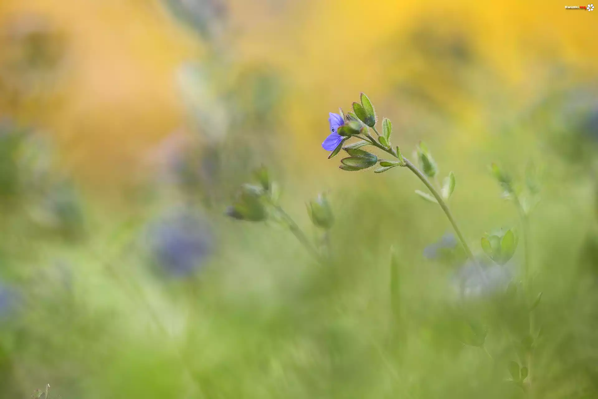 Kwiat Przetacznik, Niebieski, Kwiat, Rozmyte tło