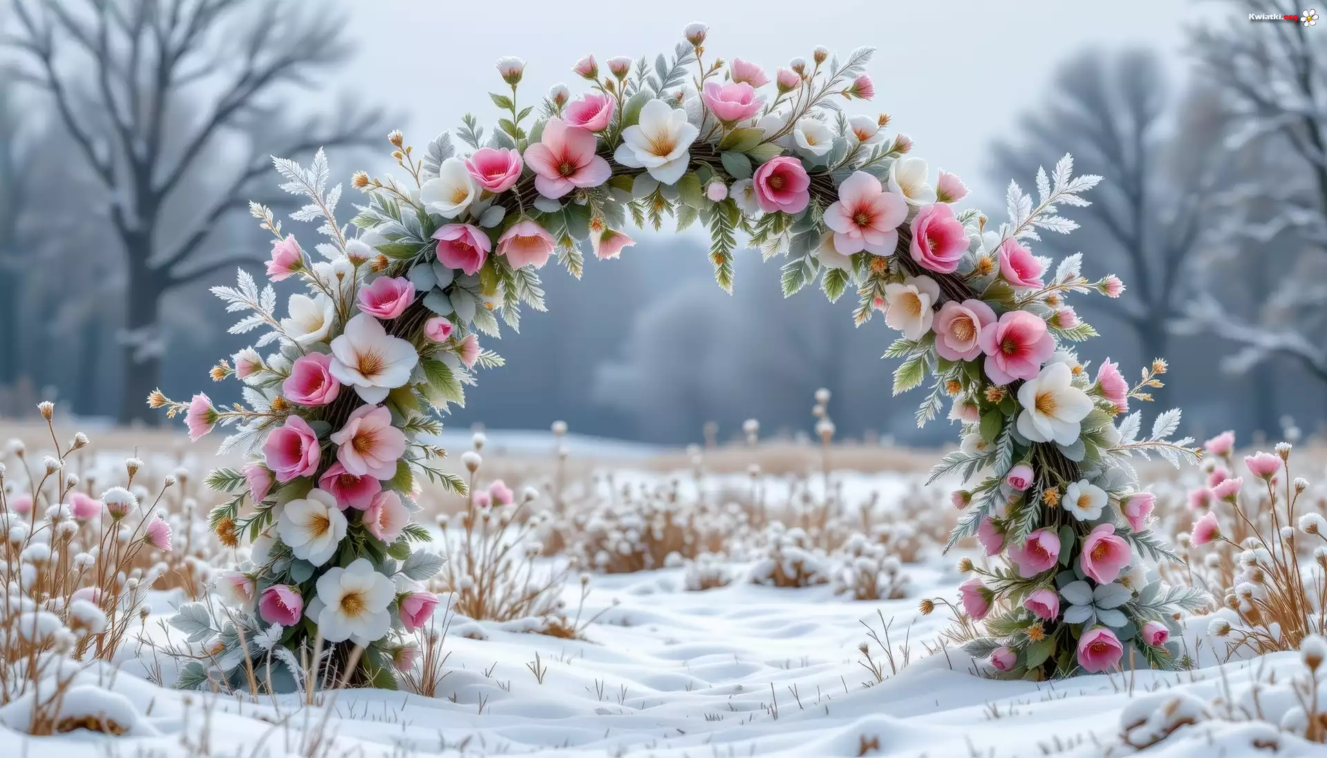 Zima, Łuk, Kwiaty, Roślinność, Drzewa, Śnieg - Zdjęcia