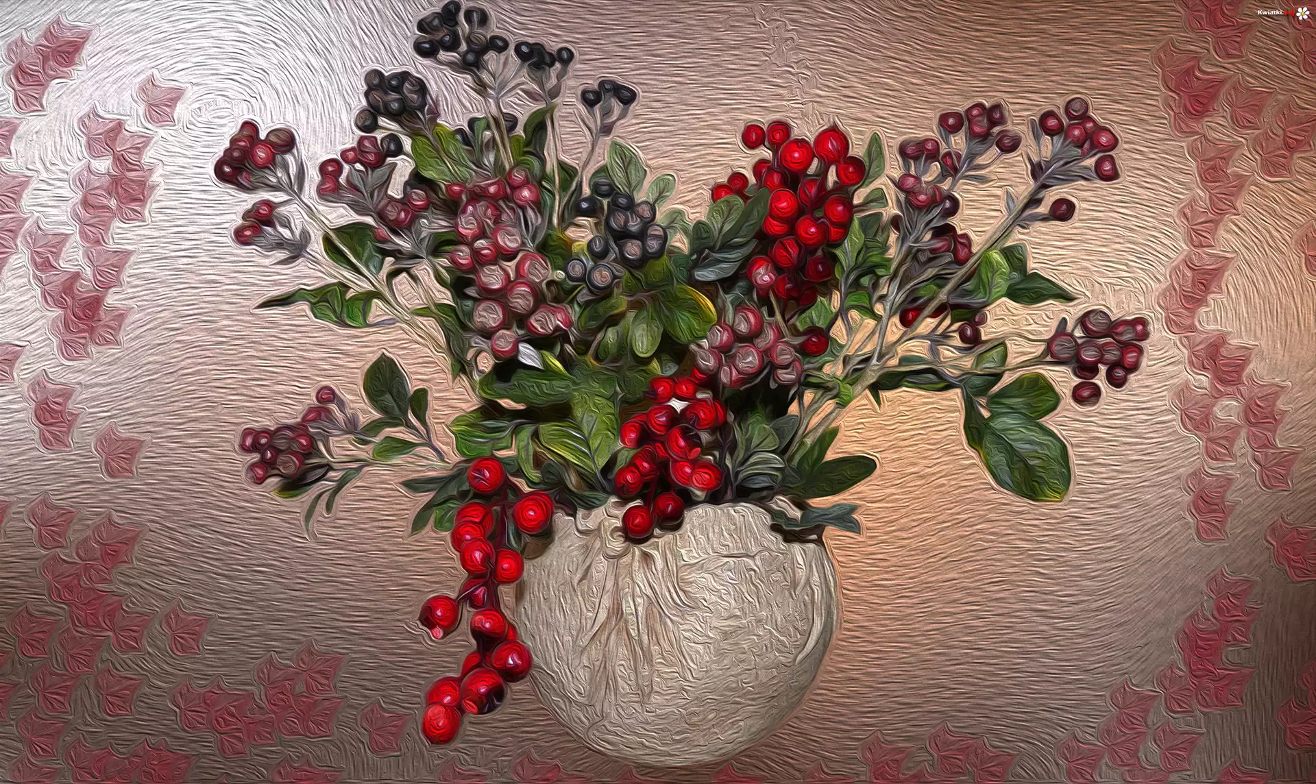 Rośliny, Bukiet, Wazonik, Grafika - Zdjęcia