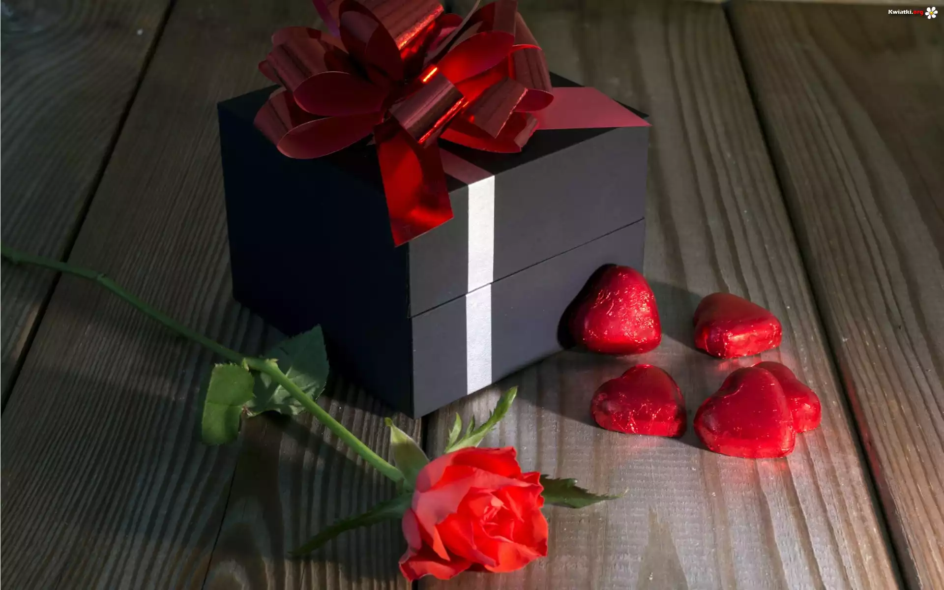 Kwiat Róża, Serduszka, Czekoladowe, Paczka, Ławka, Walentynki