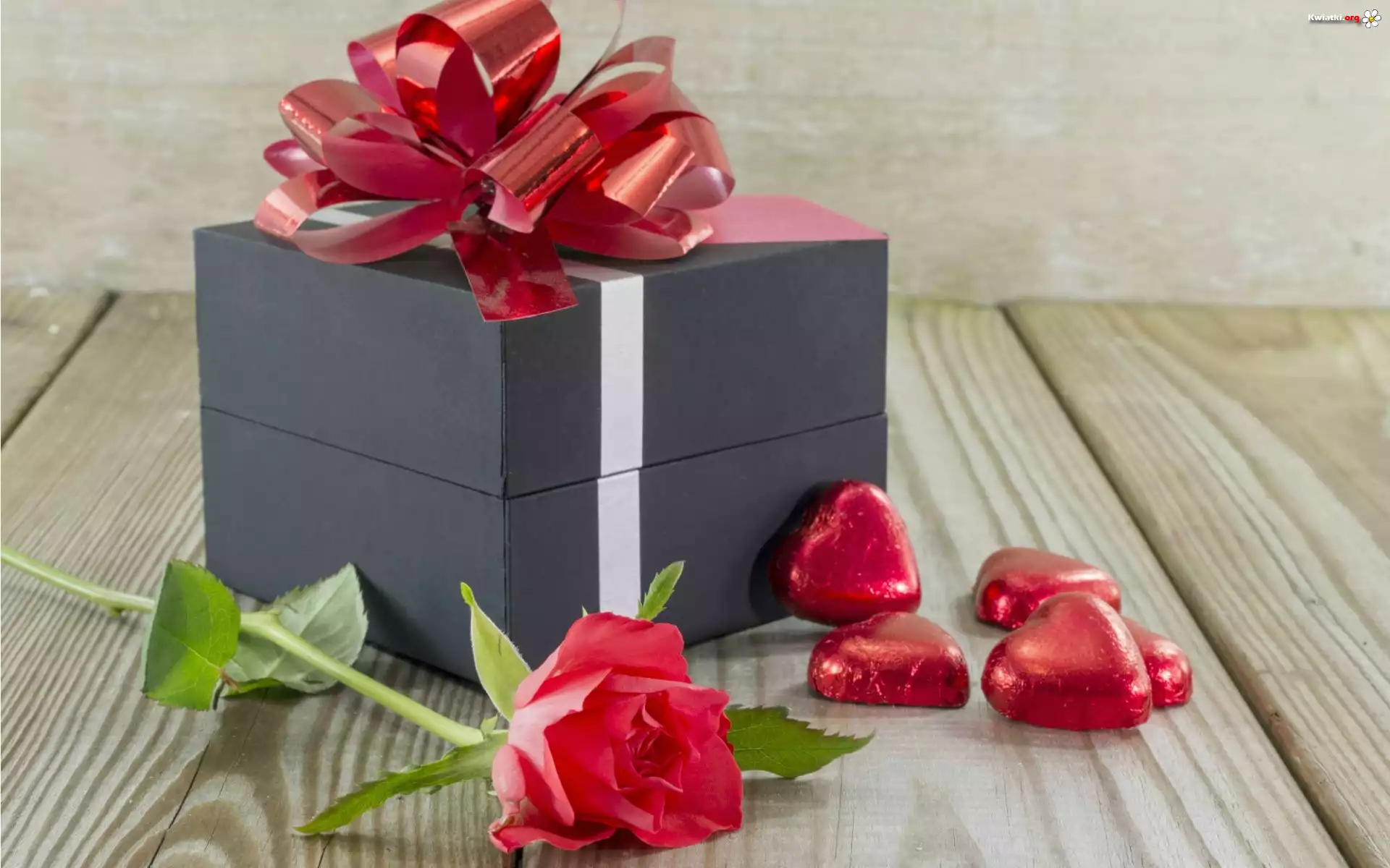 Kwiat Róża, Serduszka, Prezent, Ławka, Walentynki
