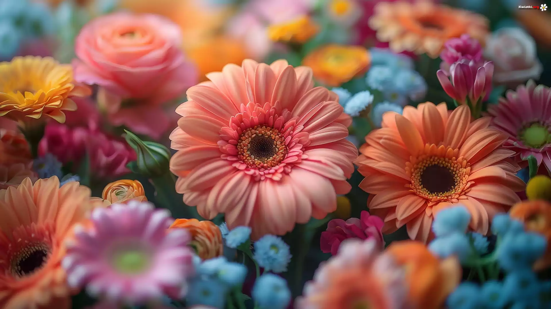 Kolorowe, Kwiaty, Gerbery, Róże - Zdjęcia