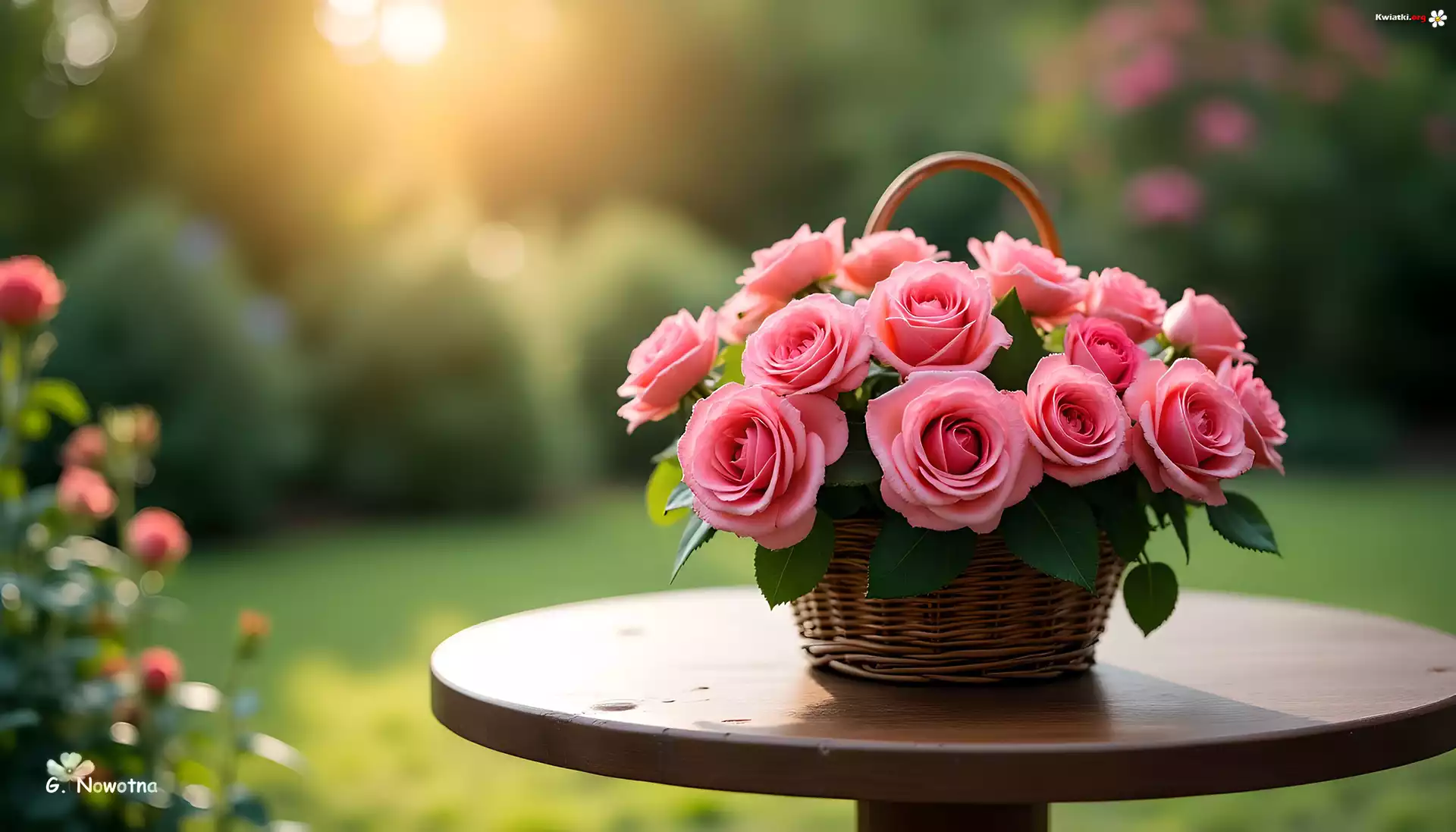 Różowe, Róże, Koszyk, Kwiaty, Grafika - Zdjęcia