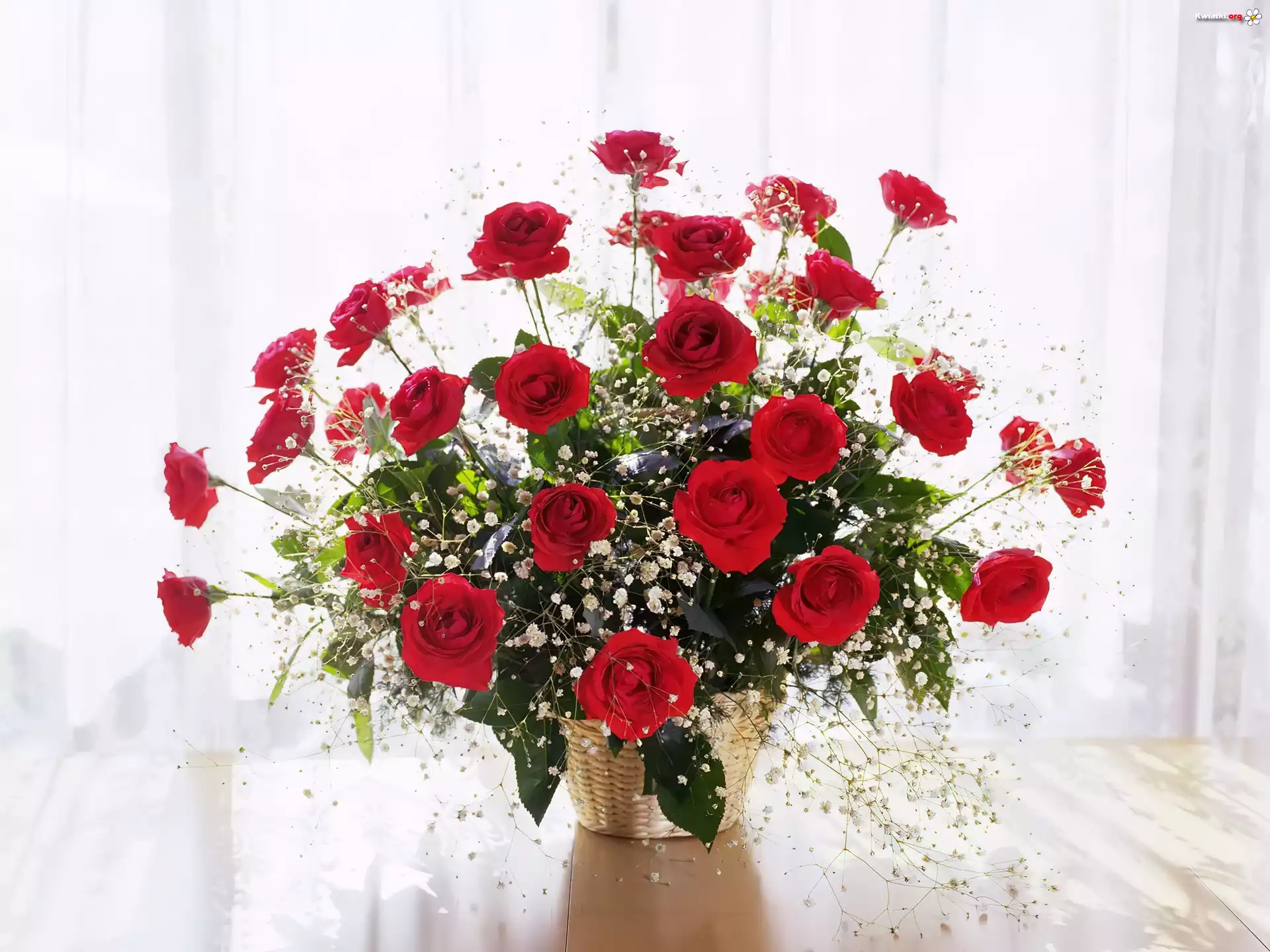 Róże, W, Koszyku, Bukiet - Zdjęcia