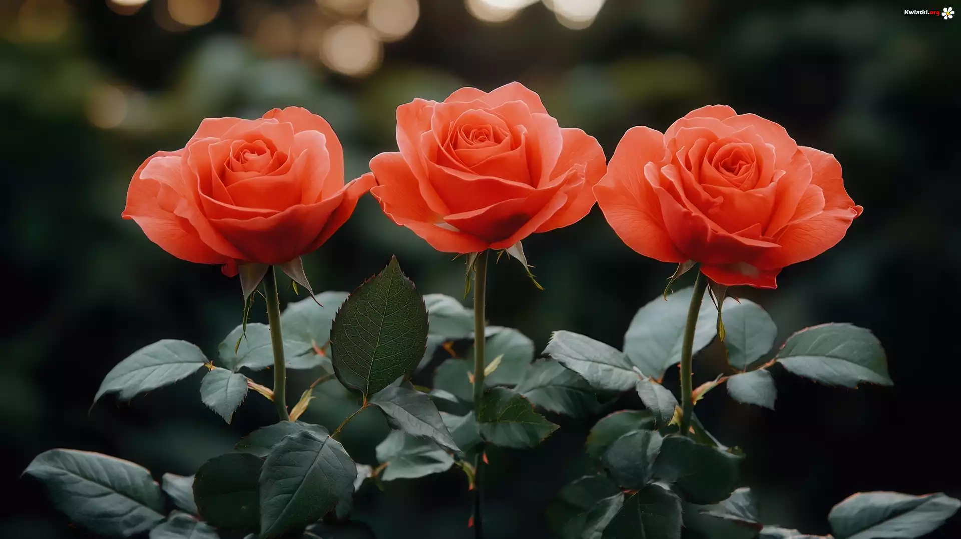 Trzy, Rozkwitające, Czerwone, Róże - Zdjęcia