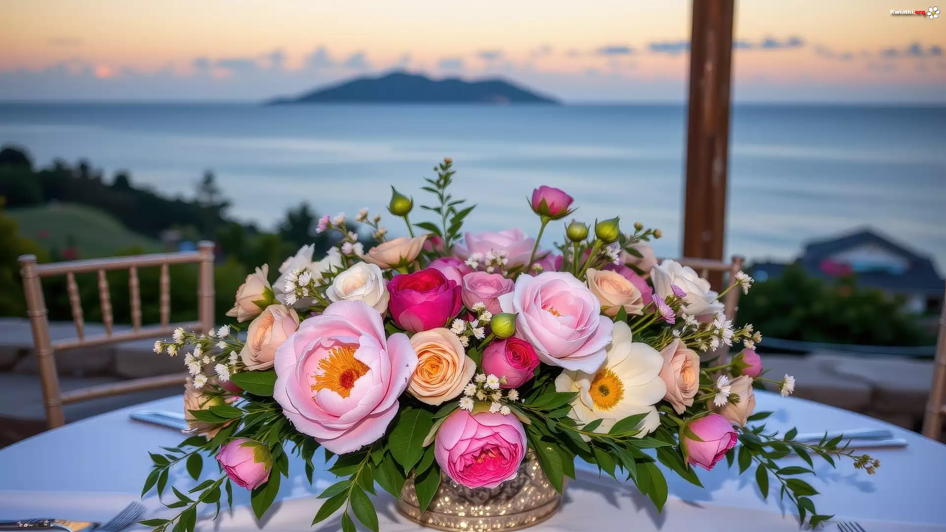 Kwiat Bukiet, Kolorowe, Kwiaty, Róże, Stół, Wazon