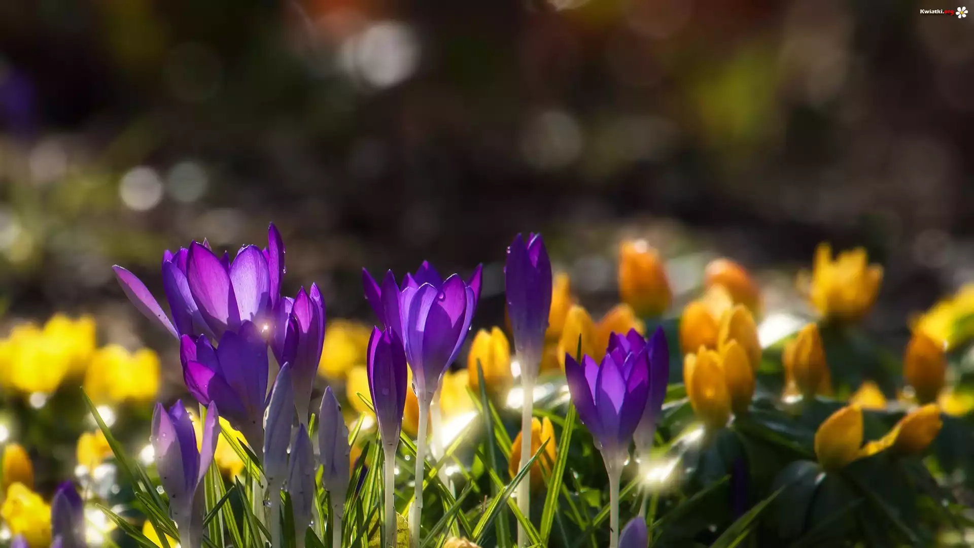 Krokusy, Rozmycie, Trawa - Zdjęcia