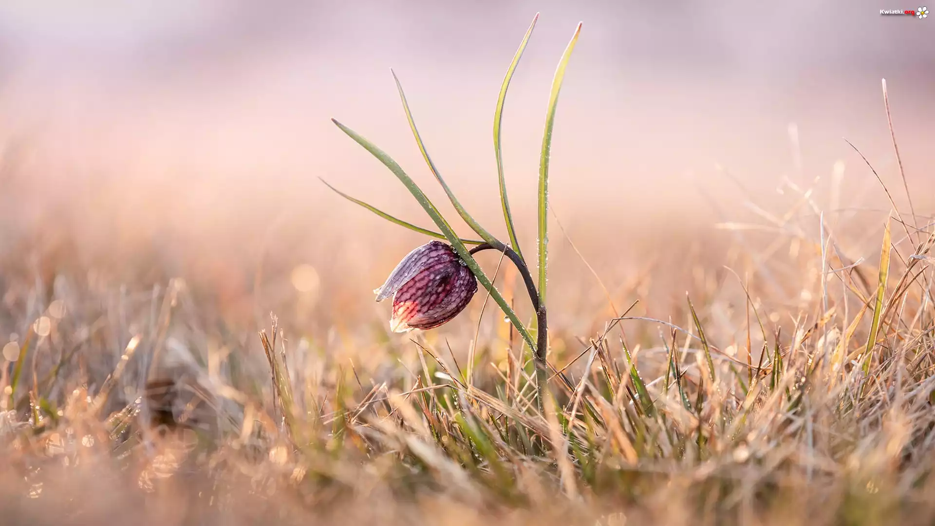 Kwiat, Szachownica kostkowata, Trawa, Rozmycie - Zdjęcia