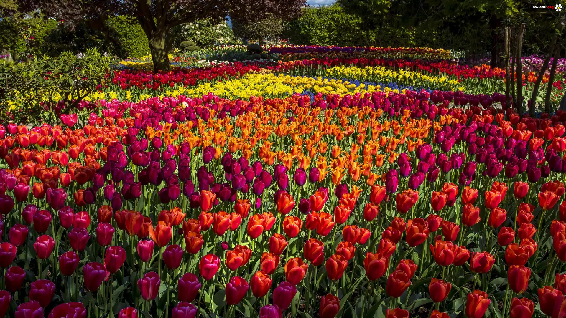Park, Różnokolorowe, Tulipany - Zdjęcia