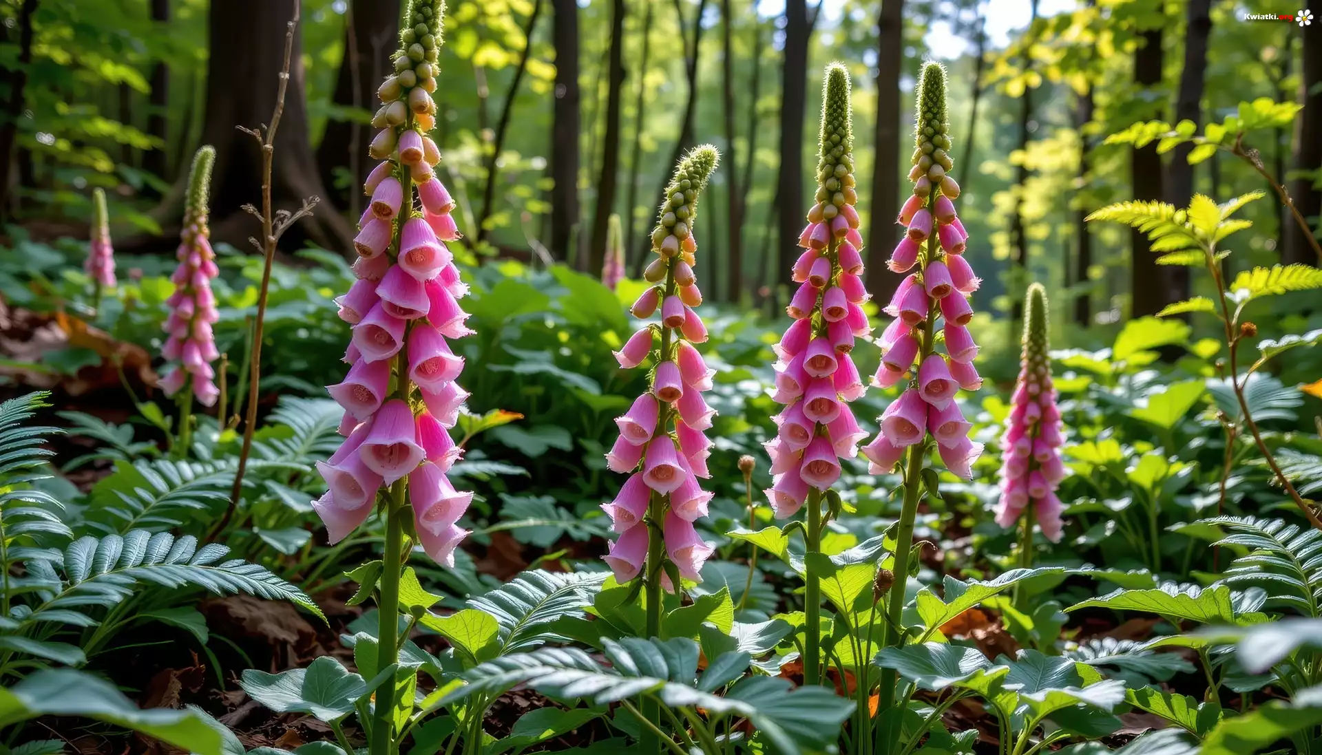 Naparstnica, Różowe, Kwiaty, Las, Grafika - Zdjęcia