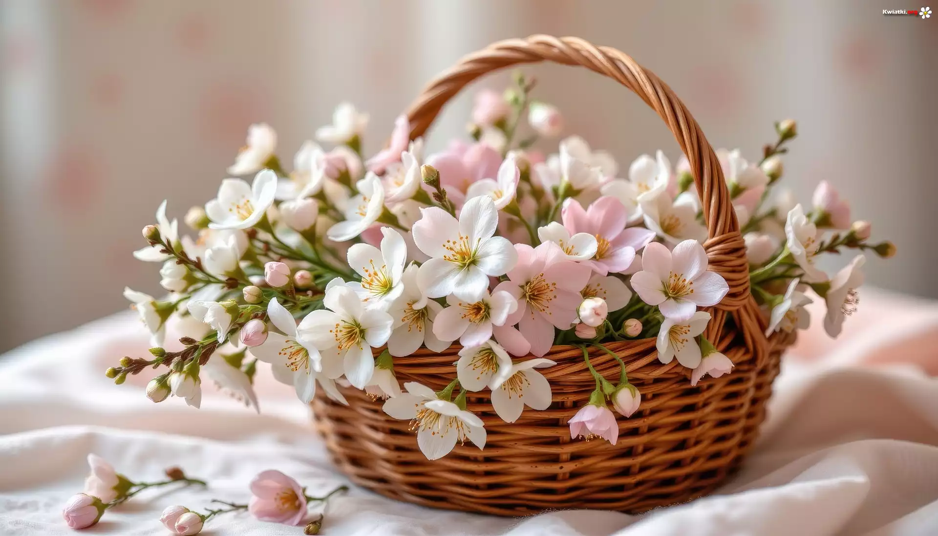 Kwiat Białe, Różowe, Kwiaty, Wiklinowy, Koszyk