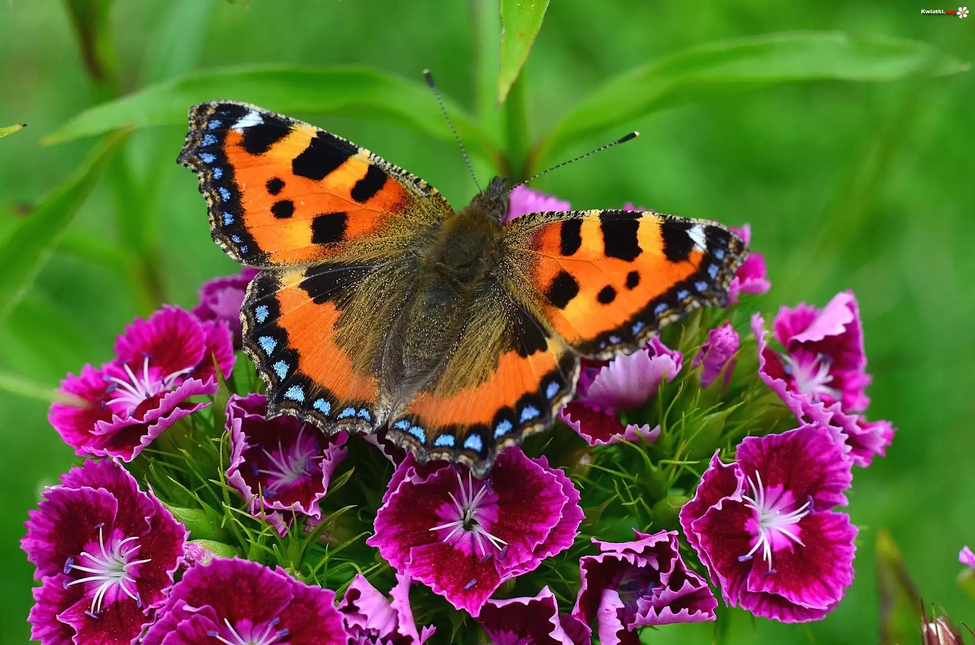 Motyl, Rusałka, Pokrzywnik, Różowe, Kwiatki - Zdjęcia