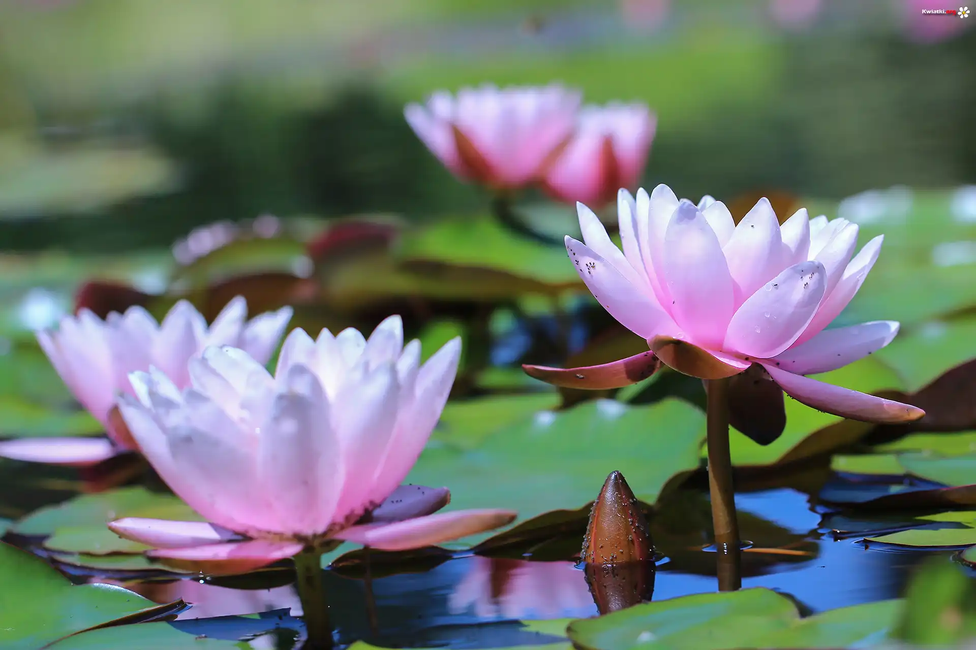 Kwiat Różowe, Lilie Wodne, Nenufary, Grzybienie