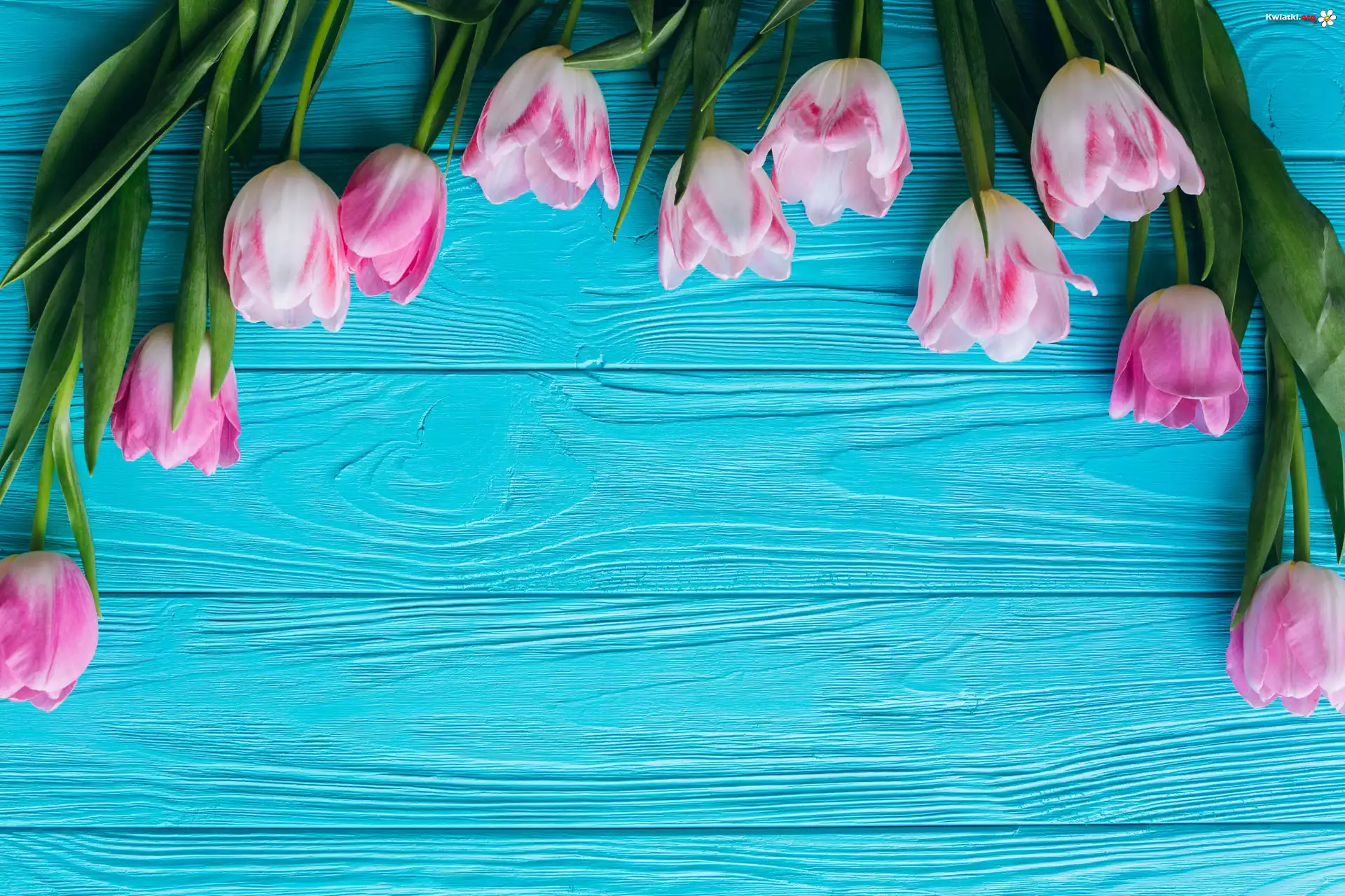 Kwiat Różowe, Tulipany, Niebieskie, Deski