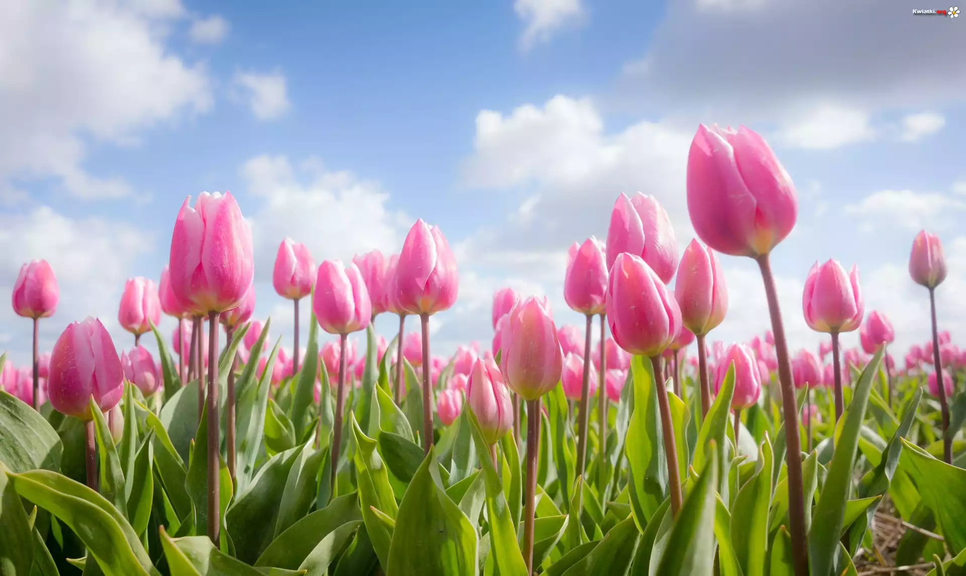 Różowe, Tulipany, Niebo, Chmury - Zdjęcia