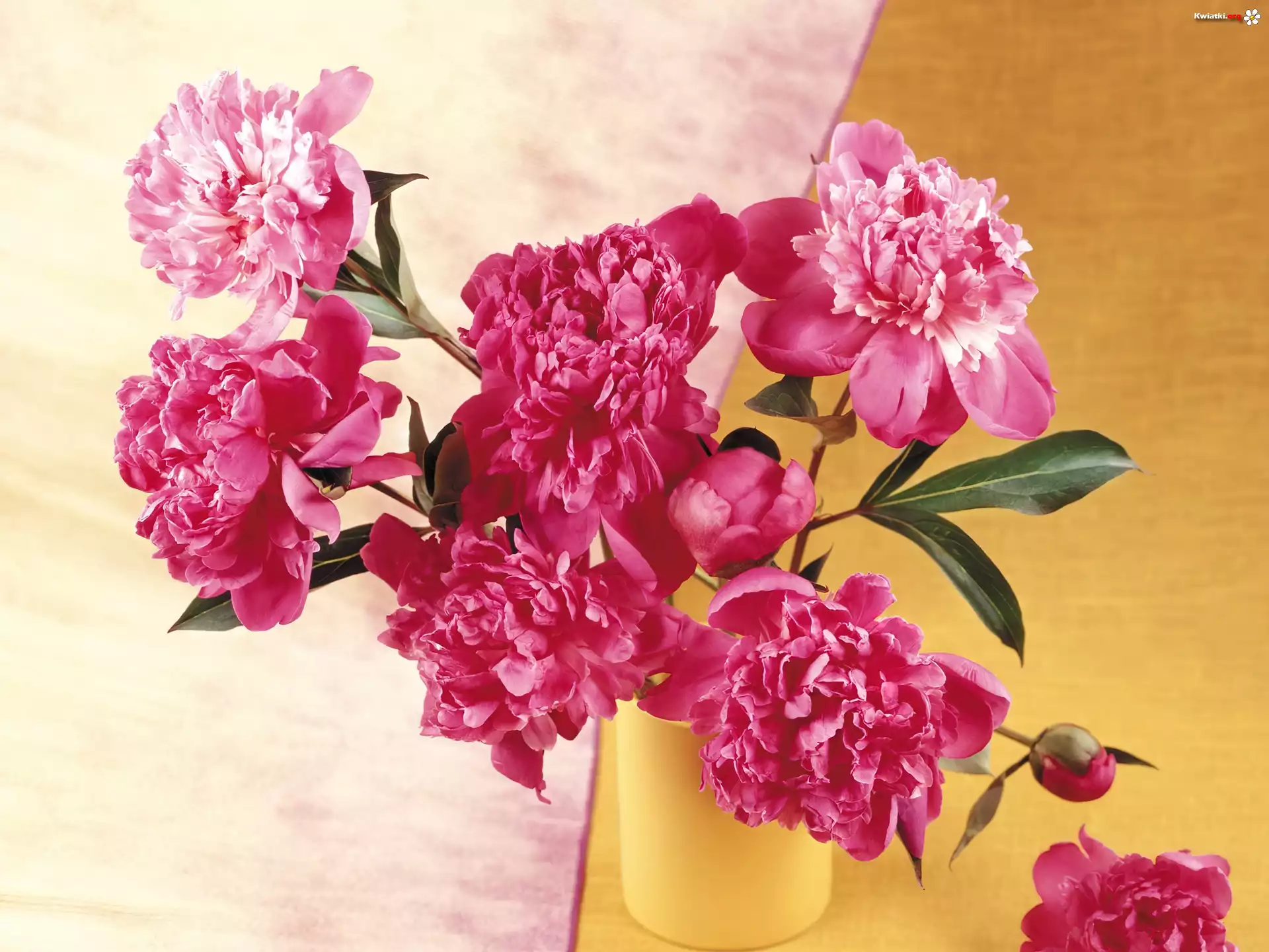 Kwiat Różowe, Piwonie, Żółty, Wazonik
